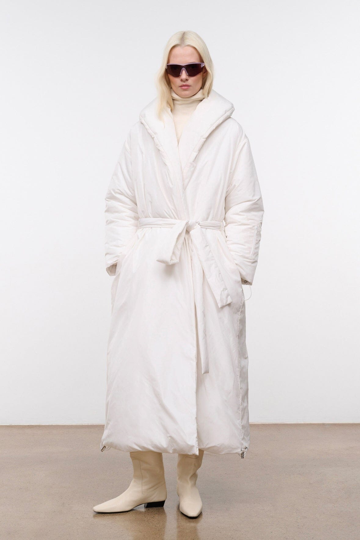 Crafted in taffeta, the Vail Coat features a relaxed silhouette which drapes beautifully over any snow day outfit. A self-tie belt lets you define your waist whenever you want, perfect for layering through the seasons.