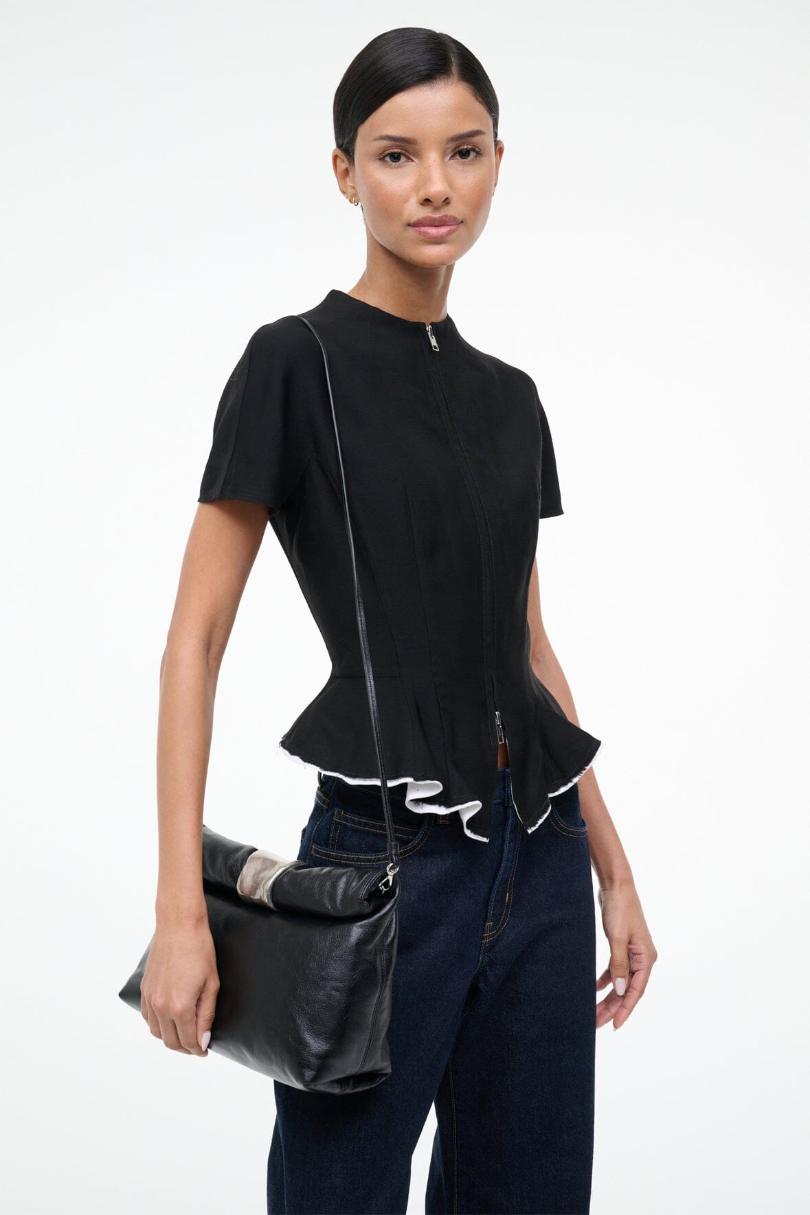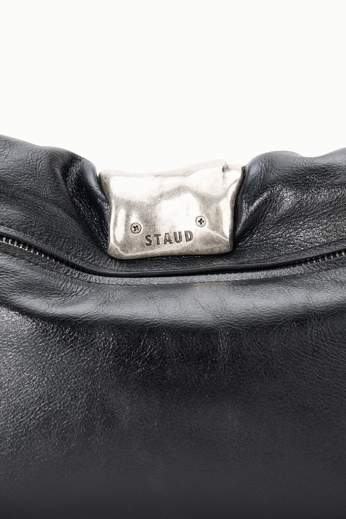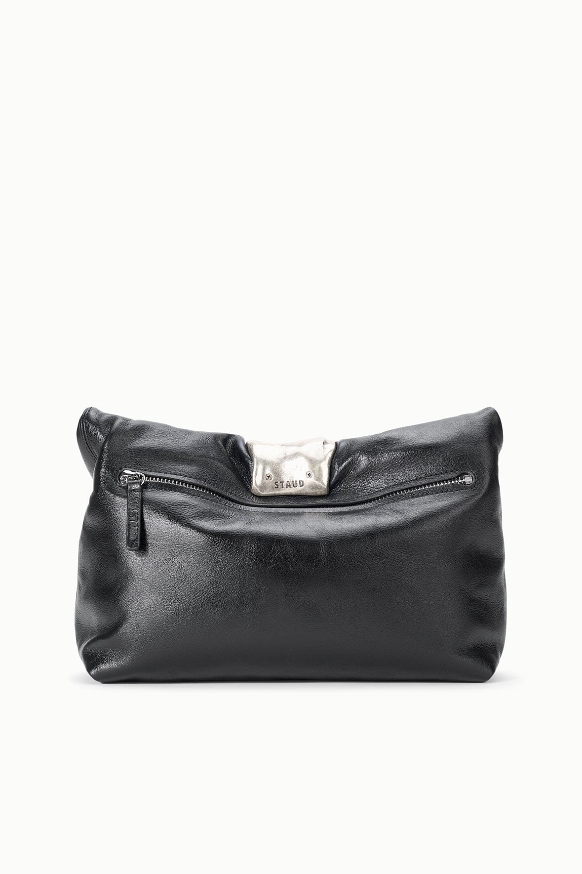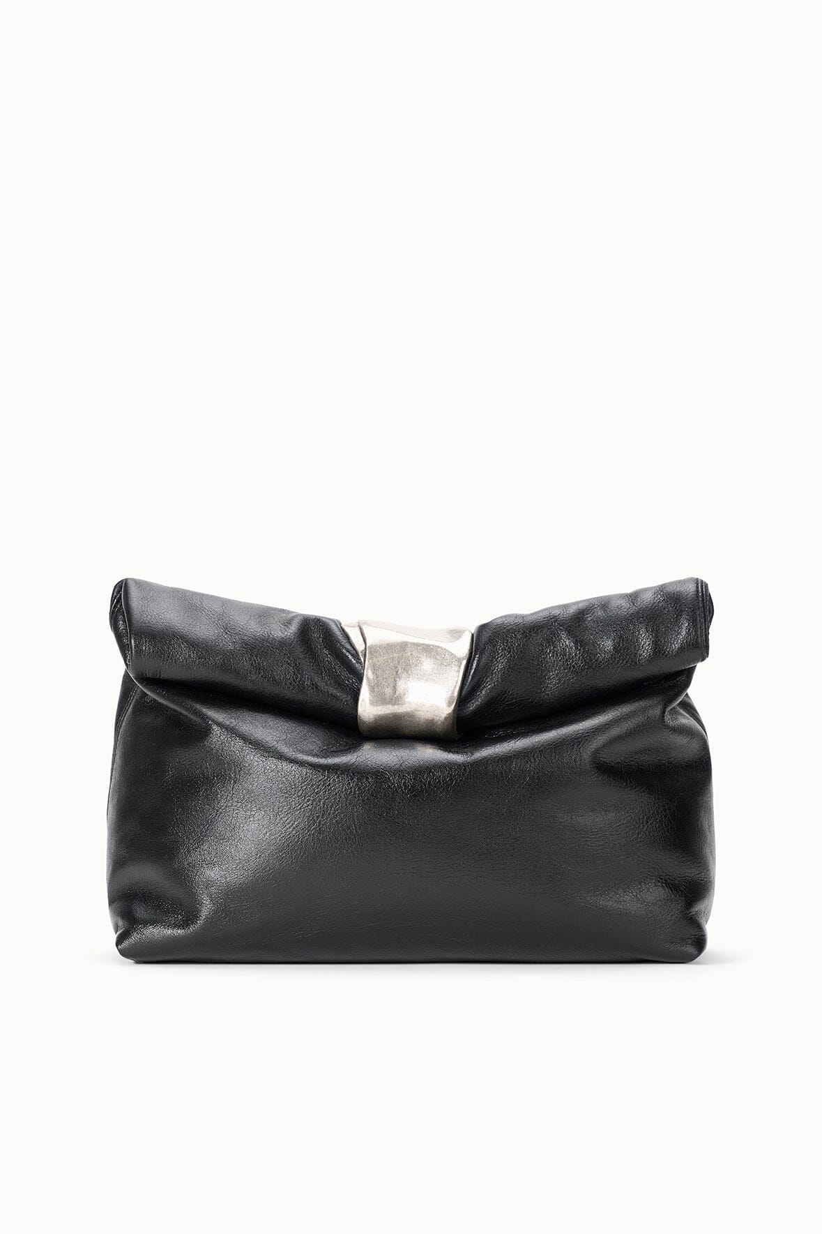 The Cuff Clutch is a slouchy clutch featuring our new organic draped metal cuff hardware. The clutch's interior is easily accessed through the zipper opening at the back and includes a detachable thin leather shoulder strap.