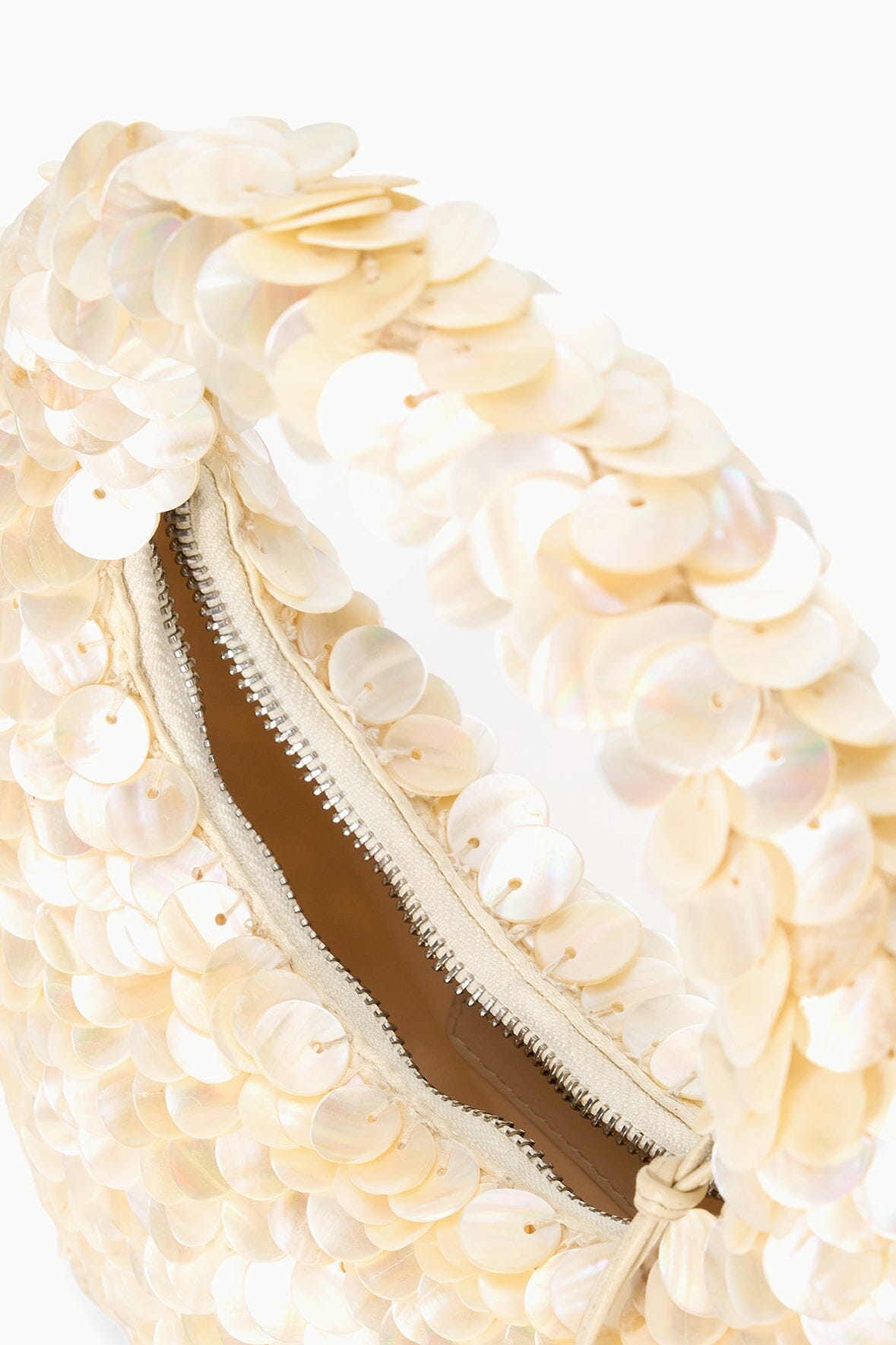Elevate your everyday style with the Reef Bag in cream. This compact handbag features delicate shell embellishments that add a coastal-inspired touch to any outfit.