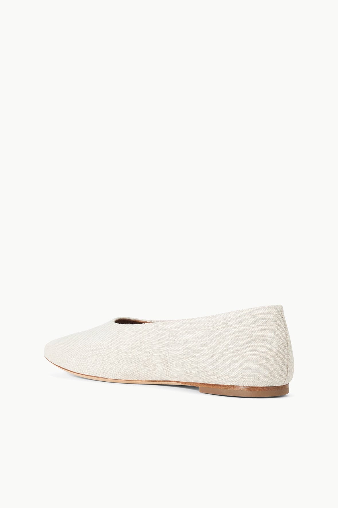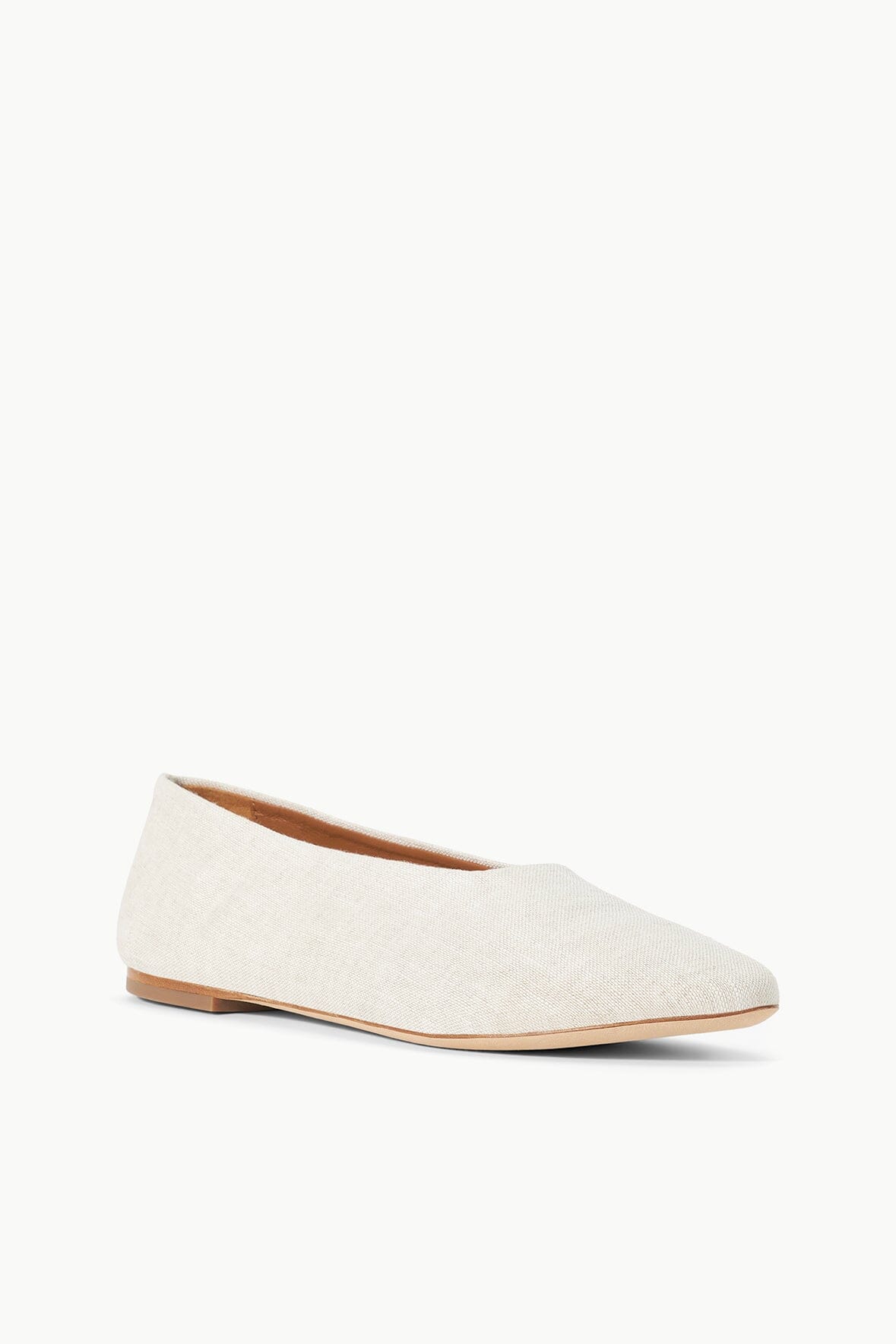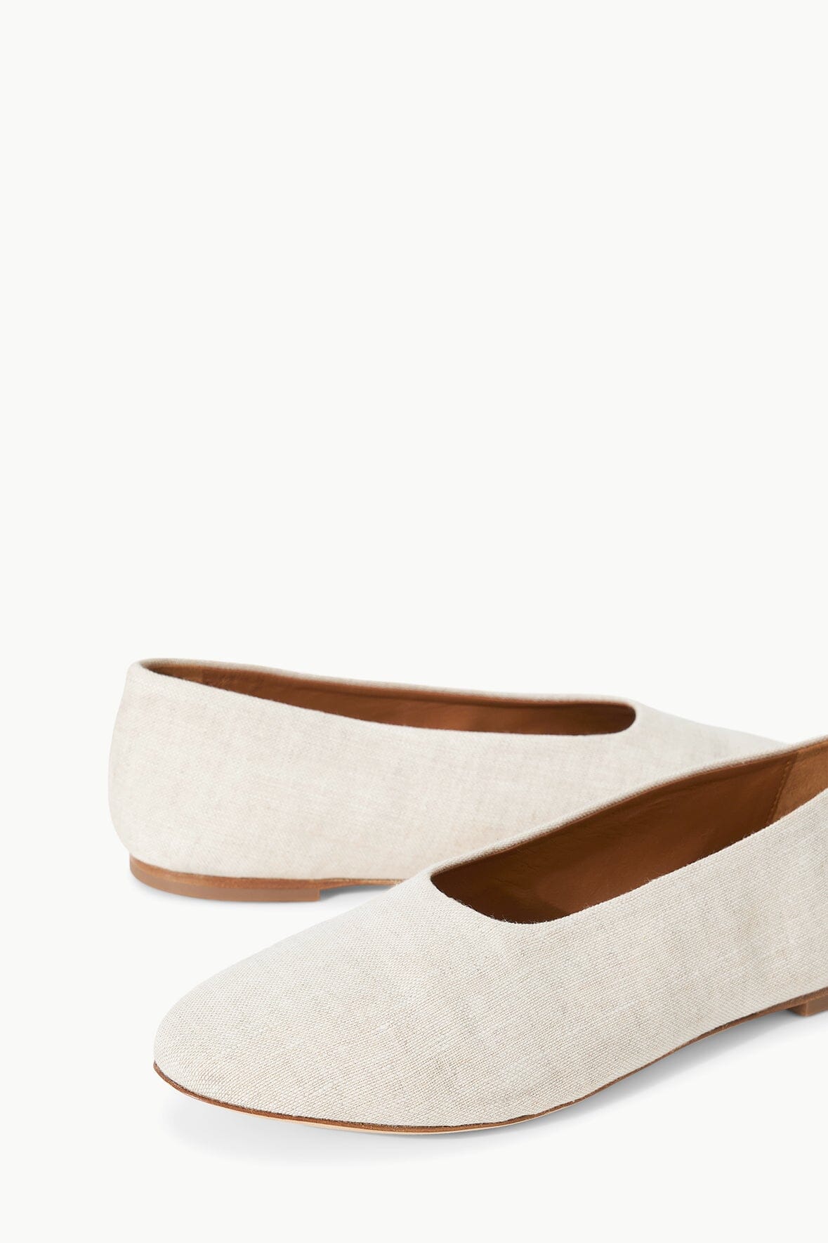 The Alba Ballet Flat is a round toe slip-on flat made from a cotton blend and lined in soft leather.