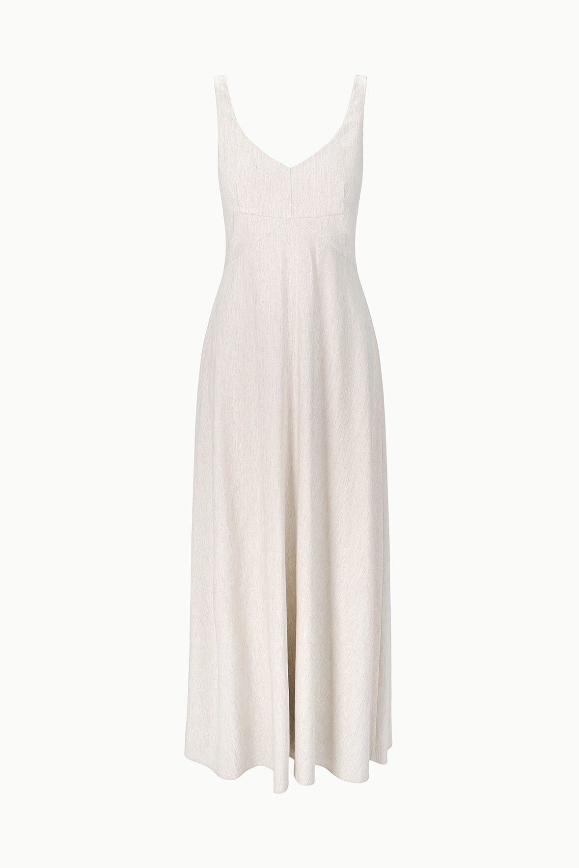 The Madison is a fitted stretch linen dress with a flattering sweetheart neckline and supportive thick straps. Effortless dressing in breathable linen.