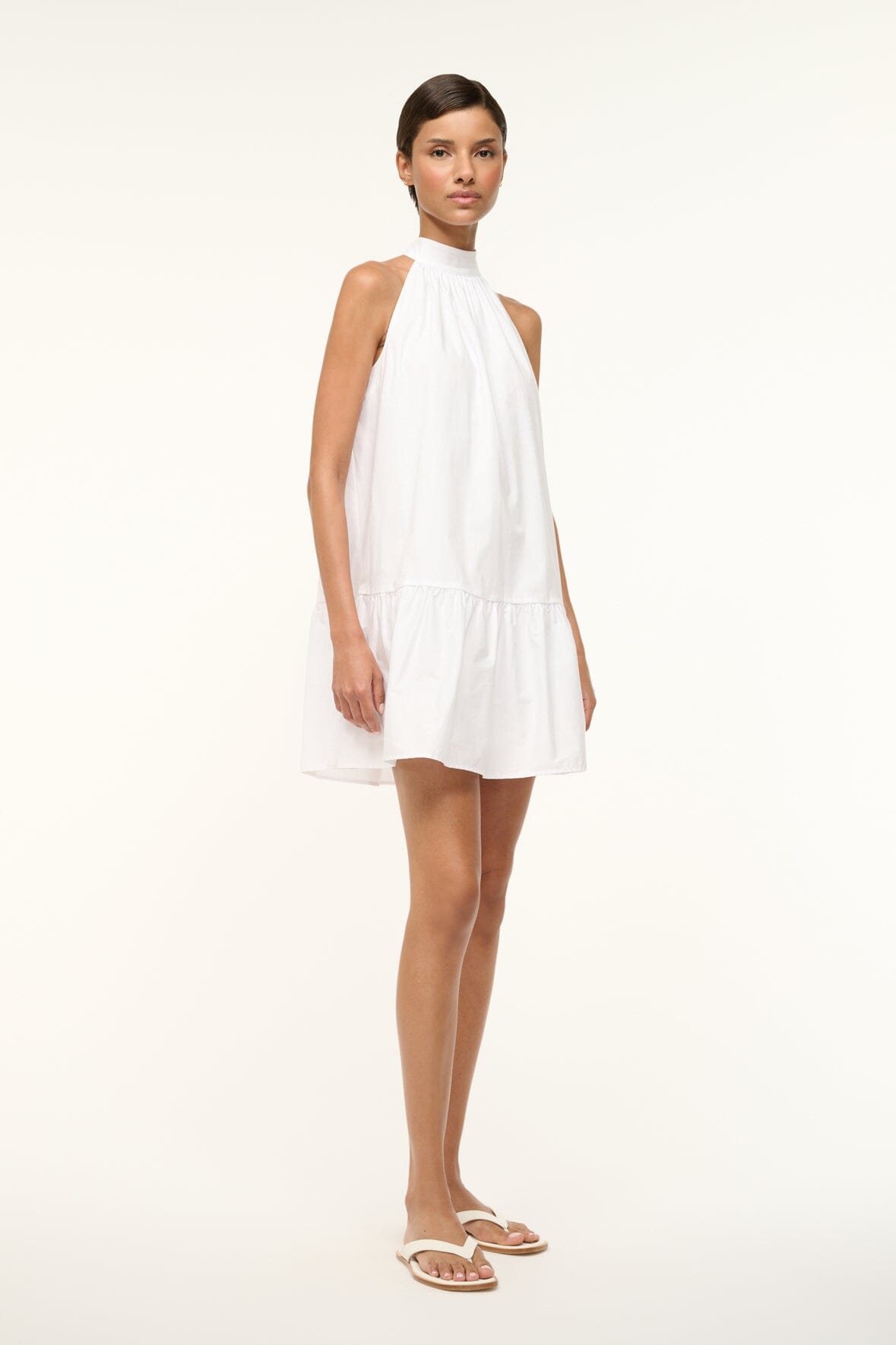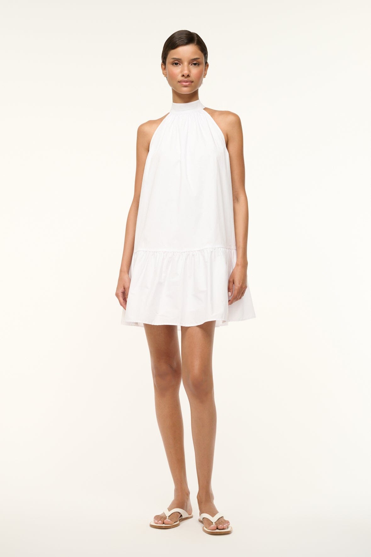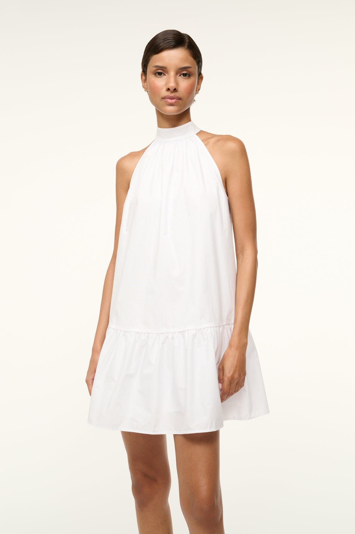 An easy a-line mini dress constructed out of cotton poplin, the Marlowe features a neck tie detail and peplum hem.