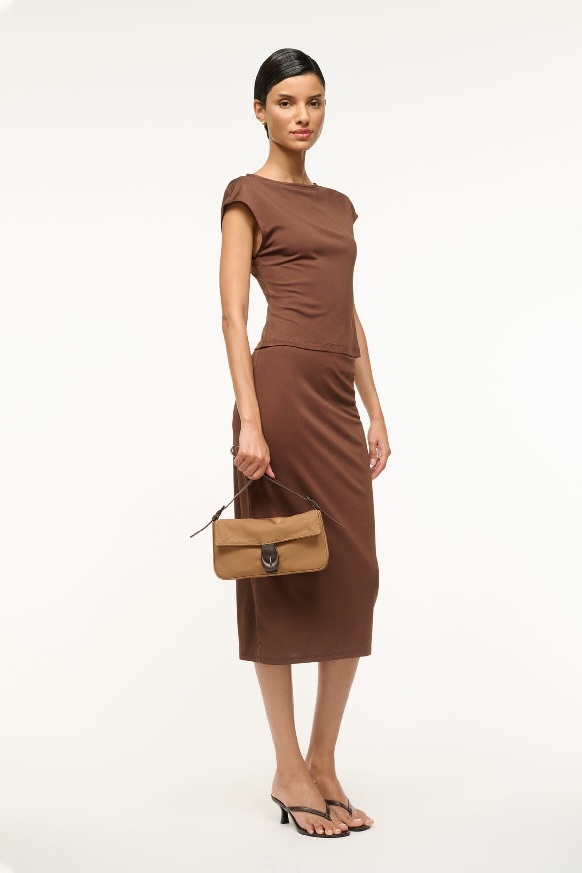 The Harlow Bag is our newest shoulder bag, featuring our signature Moon buckle hardware. This style features a center front Moon buckle, and has a snap closure and interior pocket.