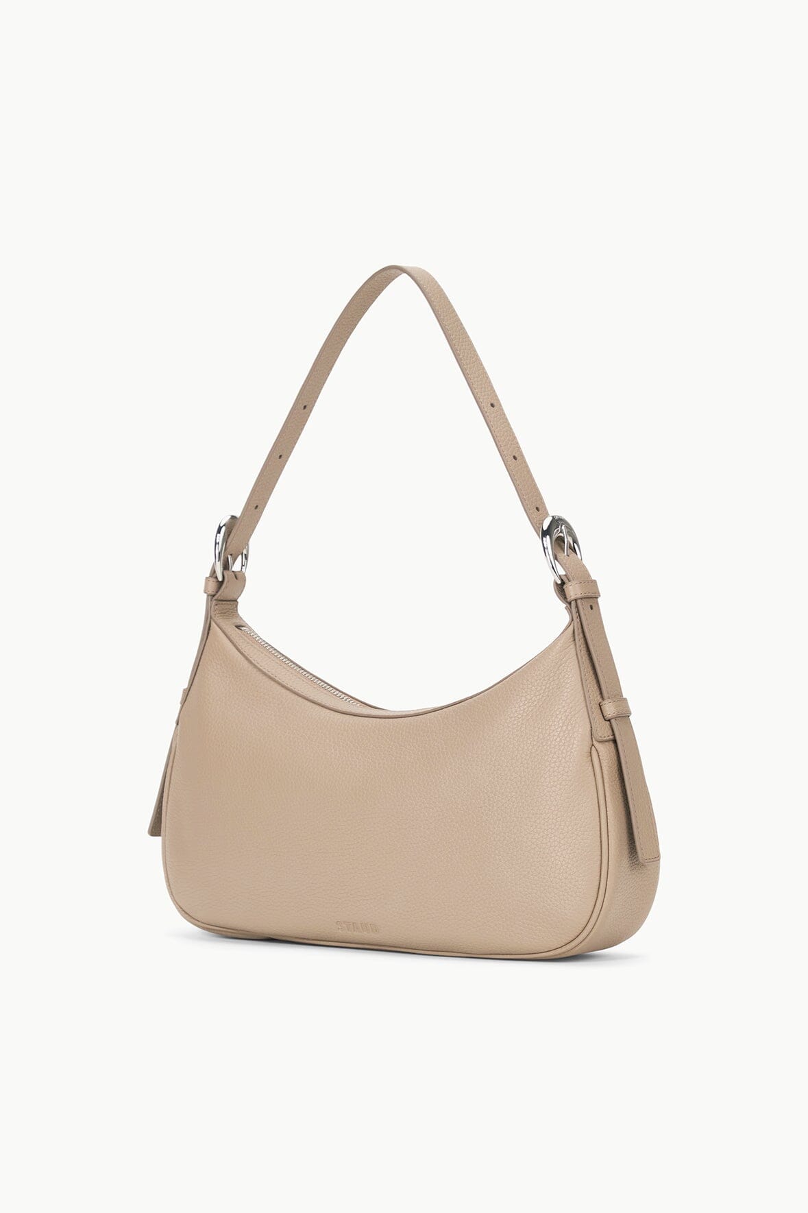 The Pine Shoulder is a pebbled leather bag with two moon shaped buckles and an adjustable shoulder strap. It features a zipper closure and an interior zipper pocket to safely store your daily essentials.