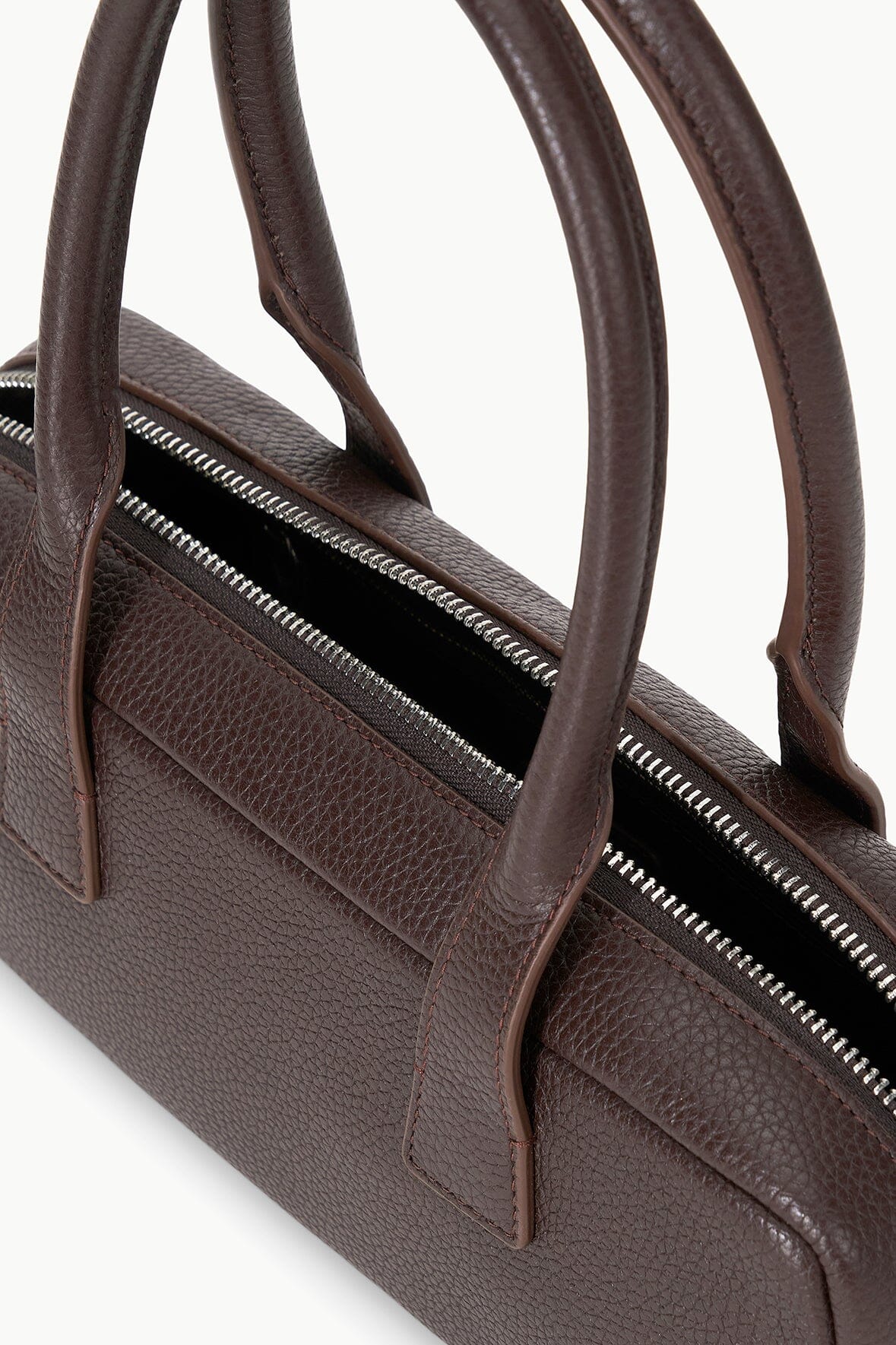 The Dude Bag is a soft pebbled leather shoulder bag with a 2-way exterior zipper and an interior zip pocket.