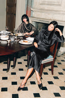 SEBASTIAN KITTEN HEEL MULE BLACK SATIN