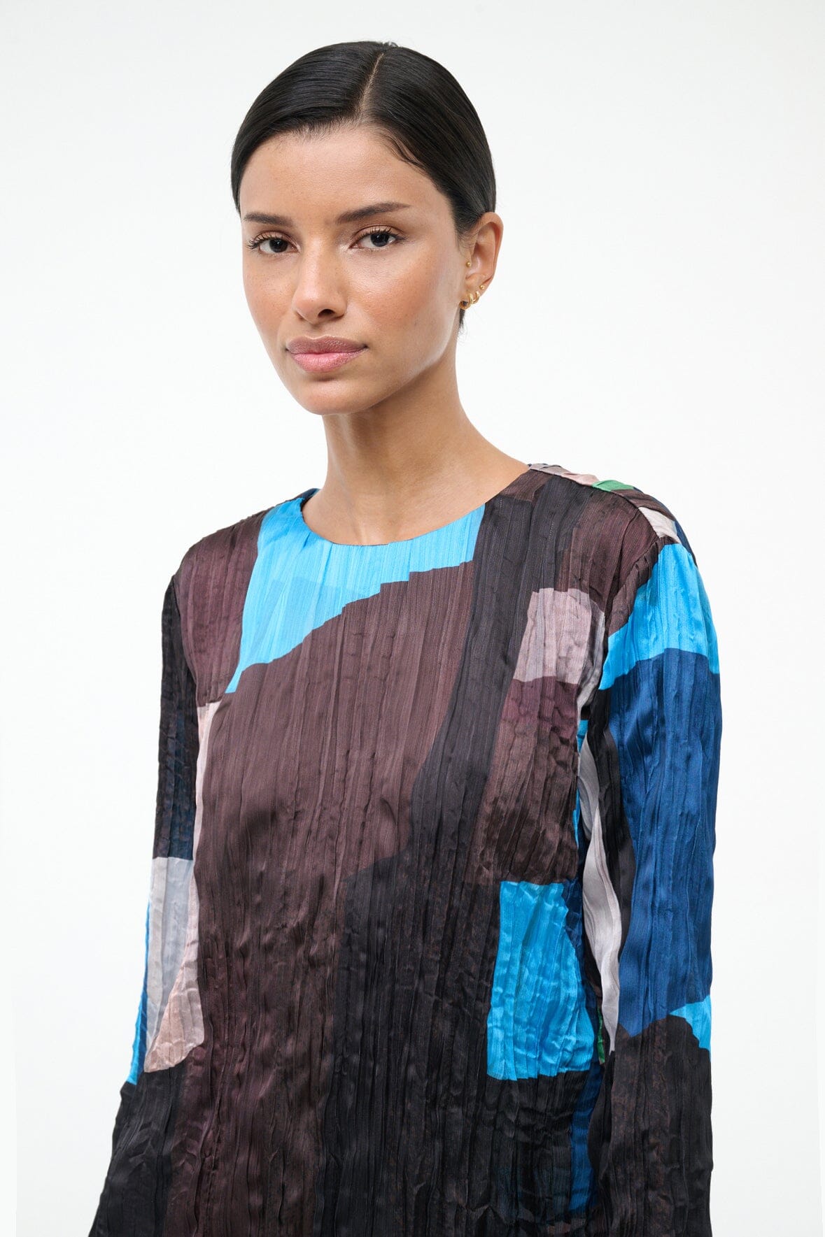 The Kona Dress is a long sleeve mini dress with a round neckline and a straight silhouette.