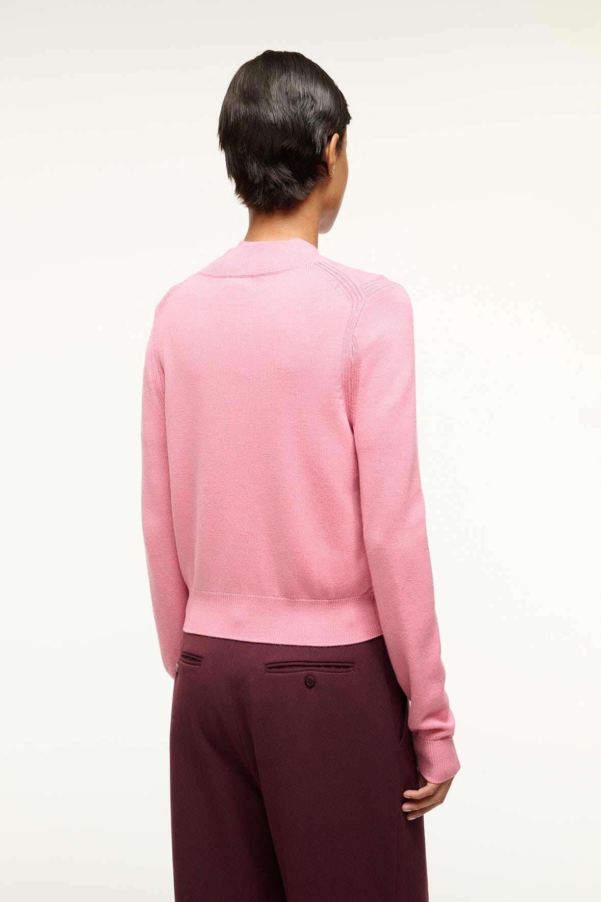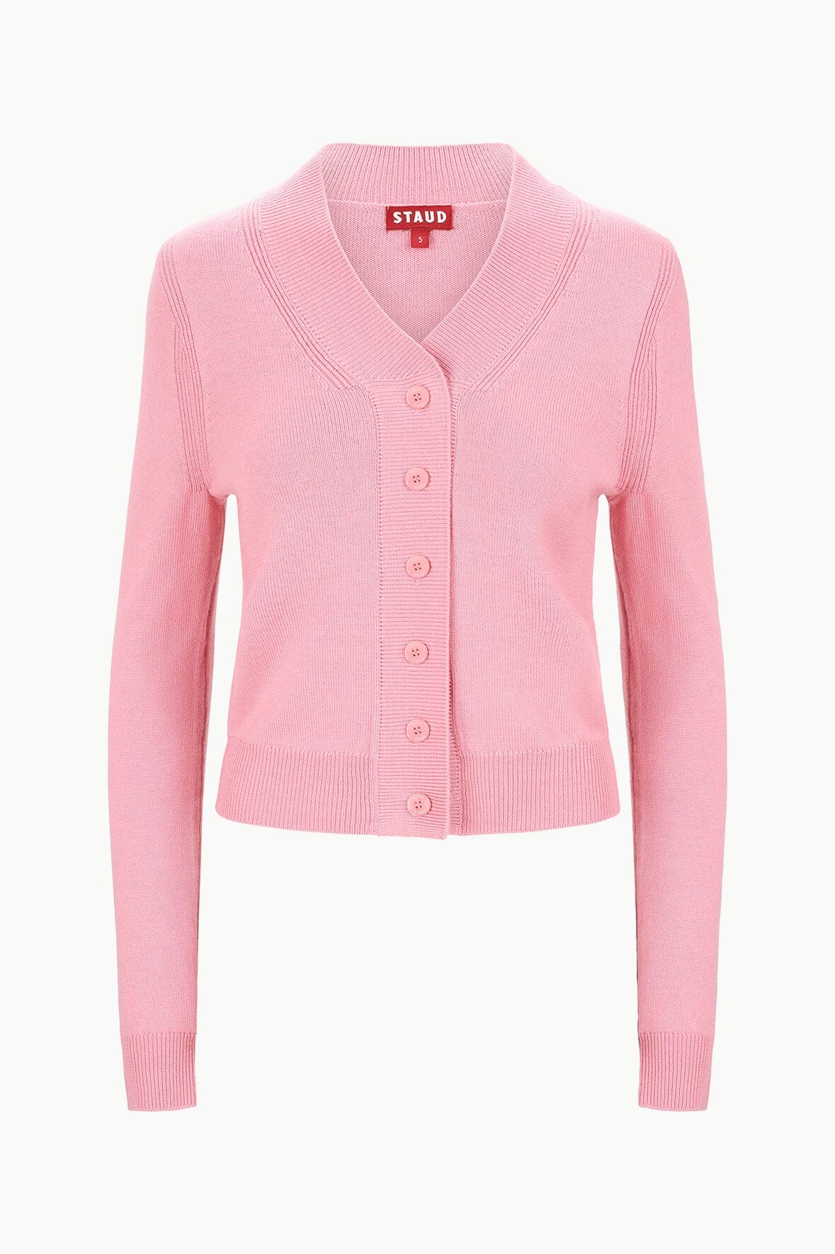 The Baxter Cardigan is a merino wool knit cardigan with a high v neckline and ribbed collar, cuffs and hem.