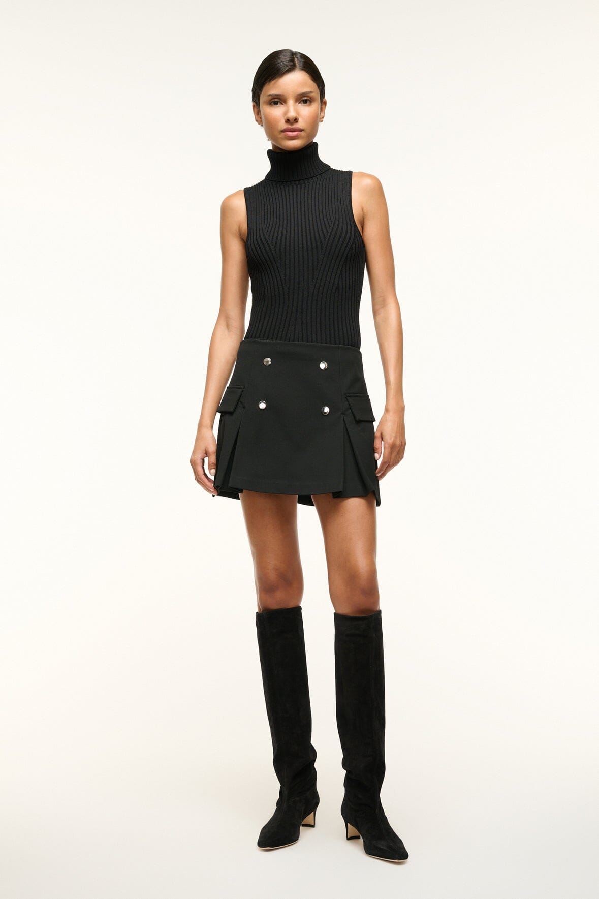The Division Skirt is an a-line mini skirt in our stretch twill for Fall. This style features decorative metal logo snaps, side pockets, and inverted pleats.