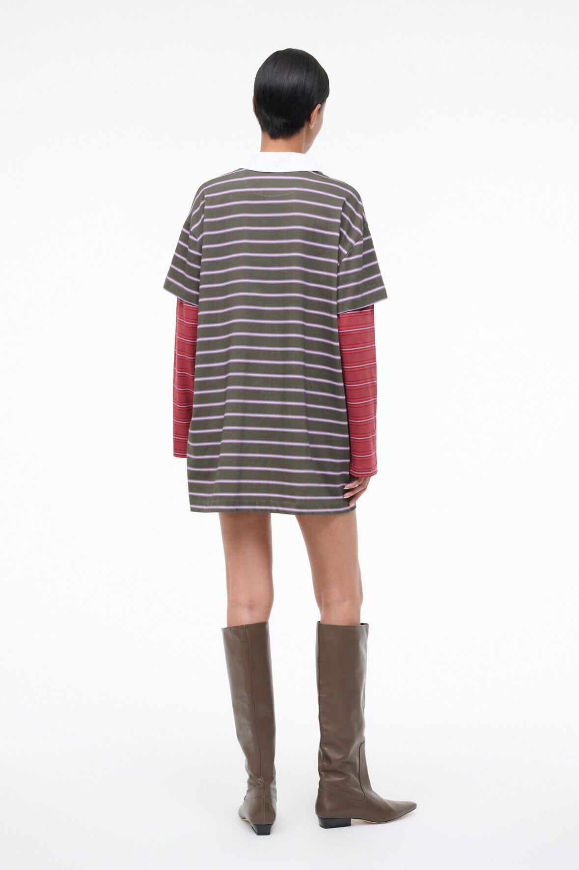 The Ivar Dress is a mini rugby dress featuring layered sleeves, a contrast poplin collar and grosgrain front placket.