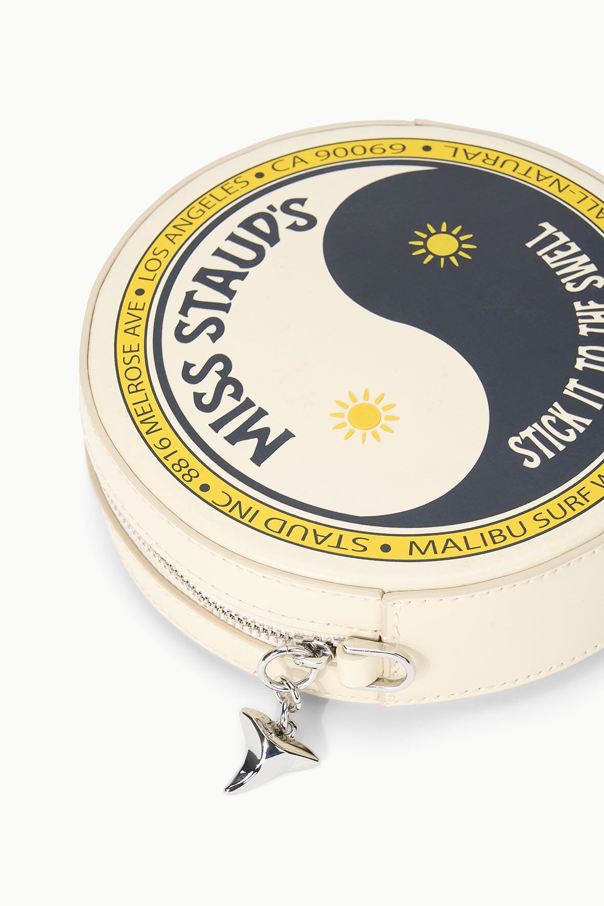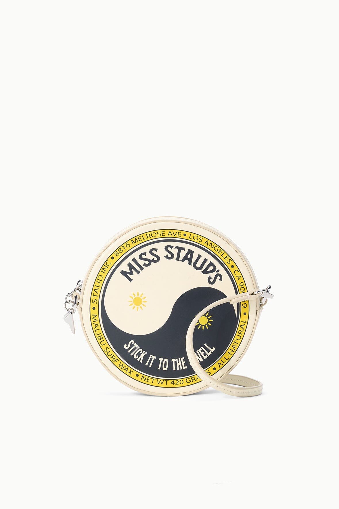 Compact and playful, this mini bag features a vibrant surf wax print that brings coastal cool to any outfit. The removable crossbody strap keeps your essentials within reach, while the rounded silhouette adds a fun, distinctive touch.