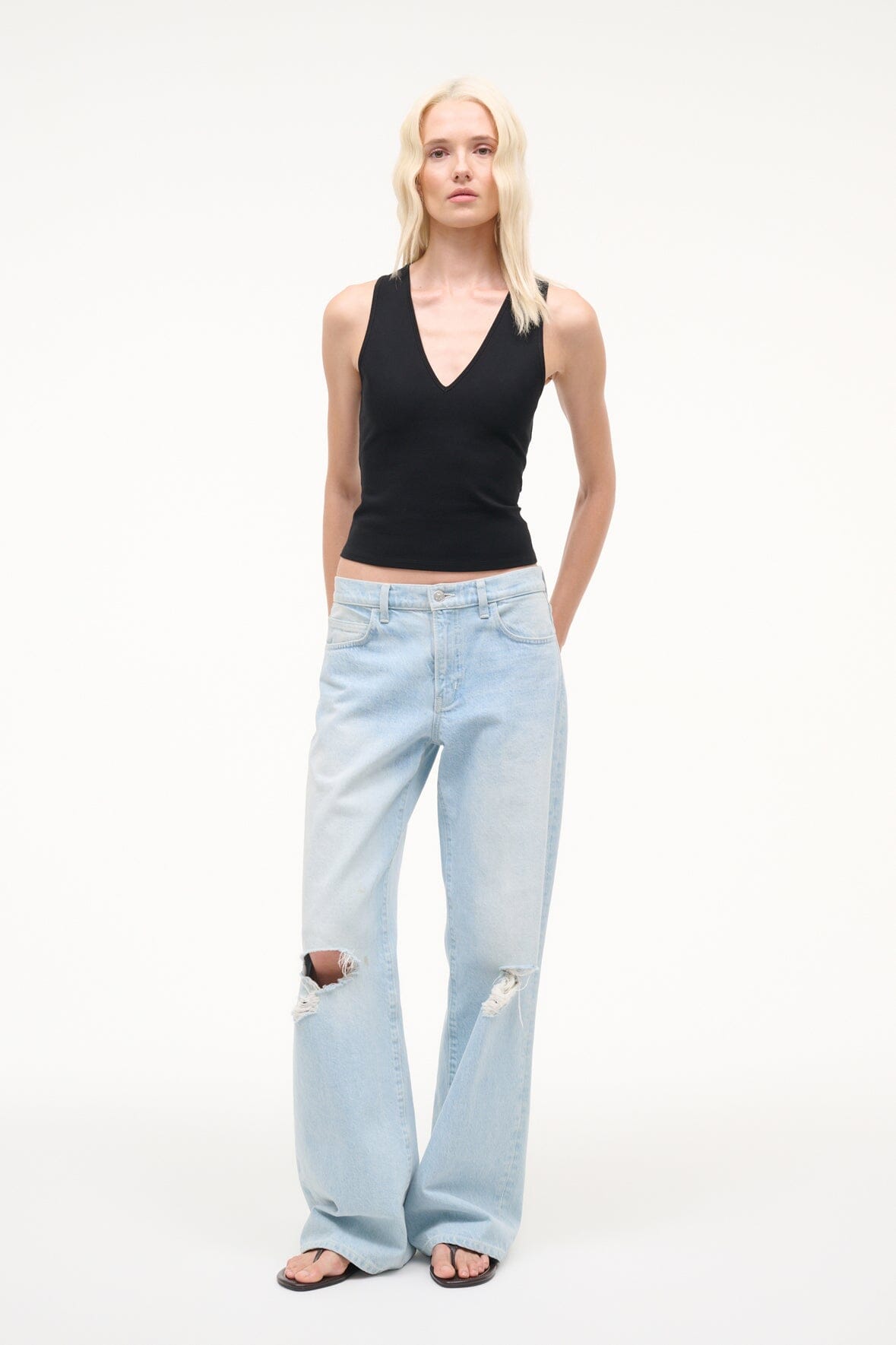An essential fitted ponte tank with deep v neckline. This style offers a slightly relaxed fit, we recommend sizing down for a more fitted look.