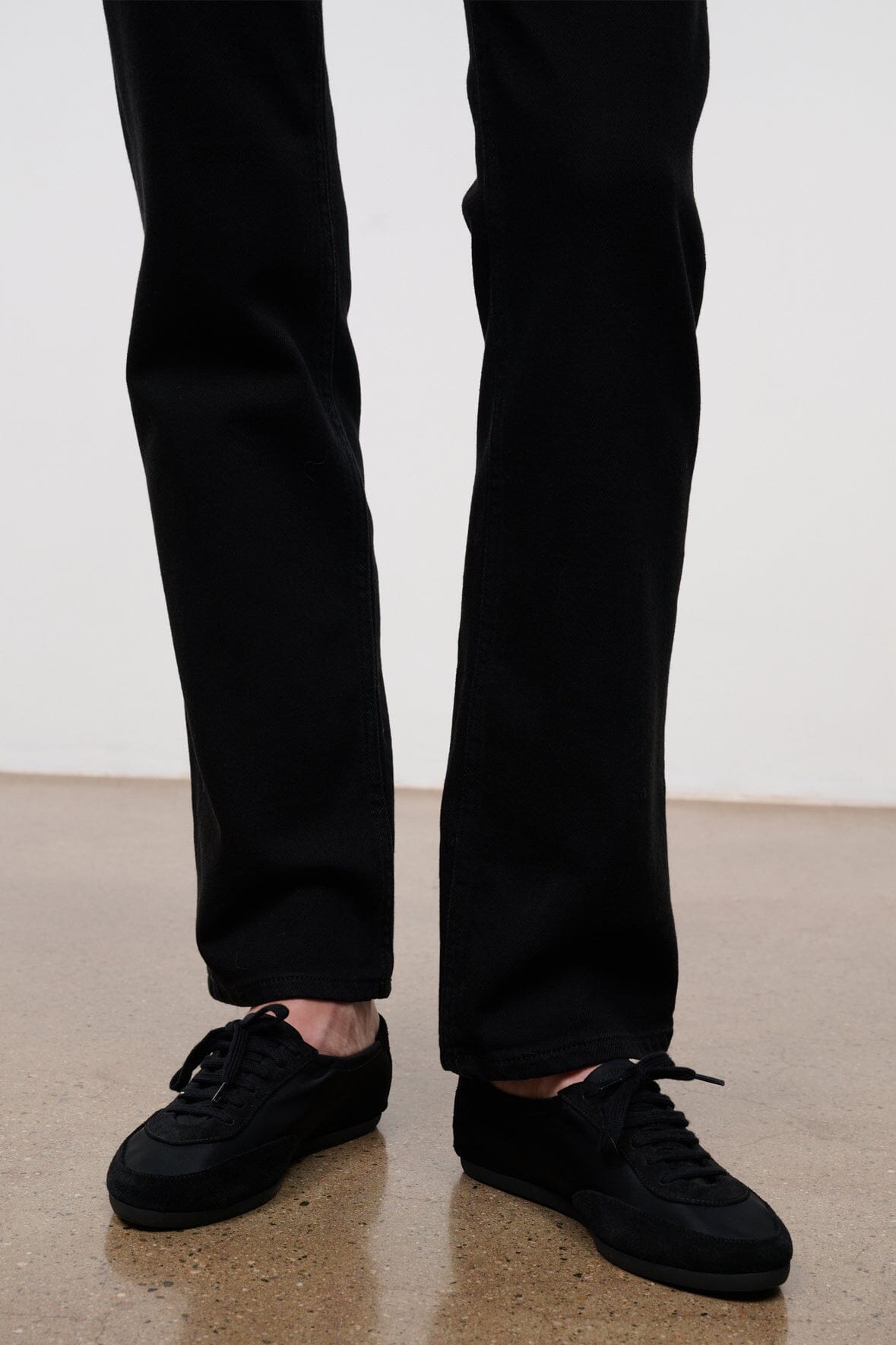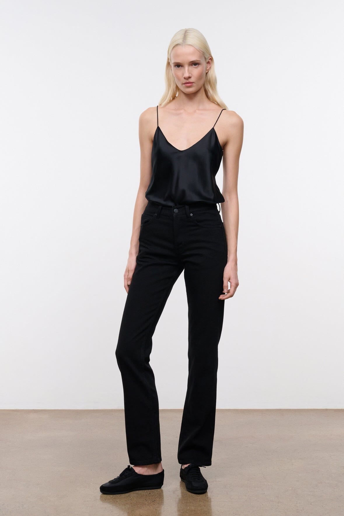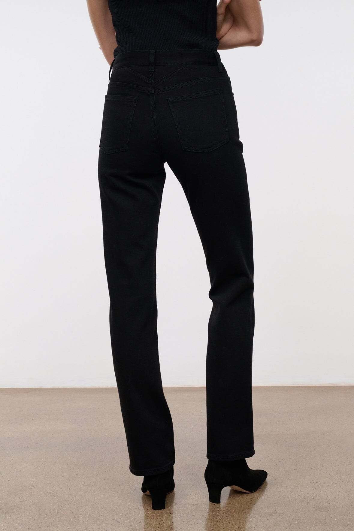 The Teddy Jean is a classic straight-leg silhouette with an easy mid-rise waist. Crafted from Italian rigid denim, it has a flattering V-shaped yoke at the back. Complete with antique-finish hardware and a logo-embroidered button fly.