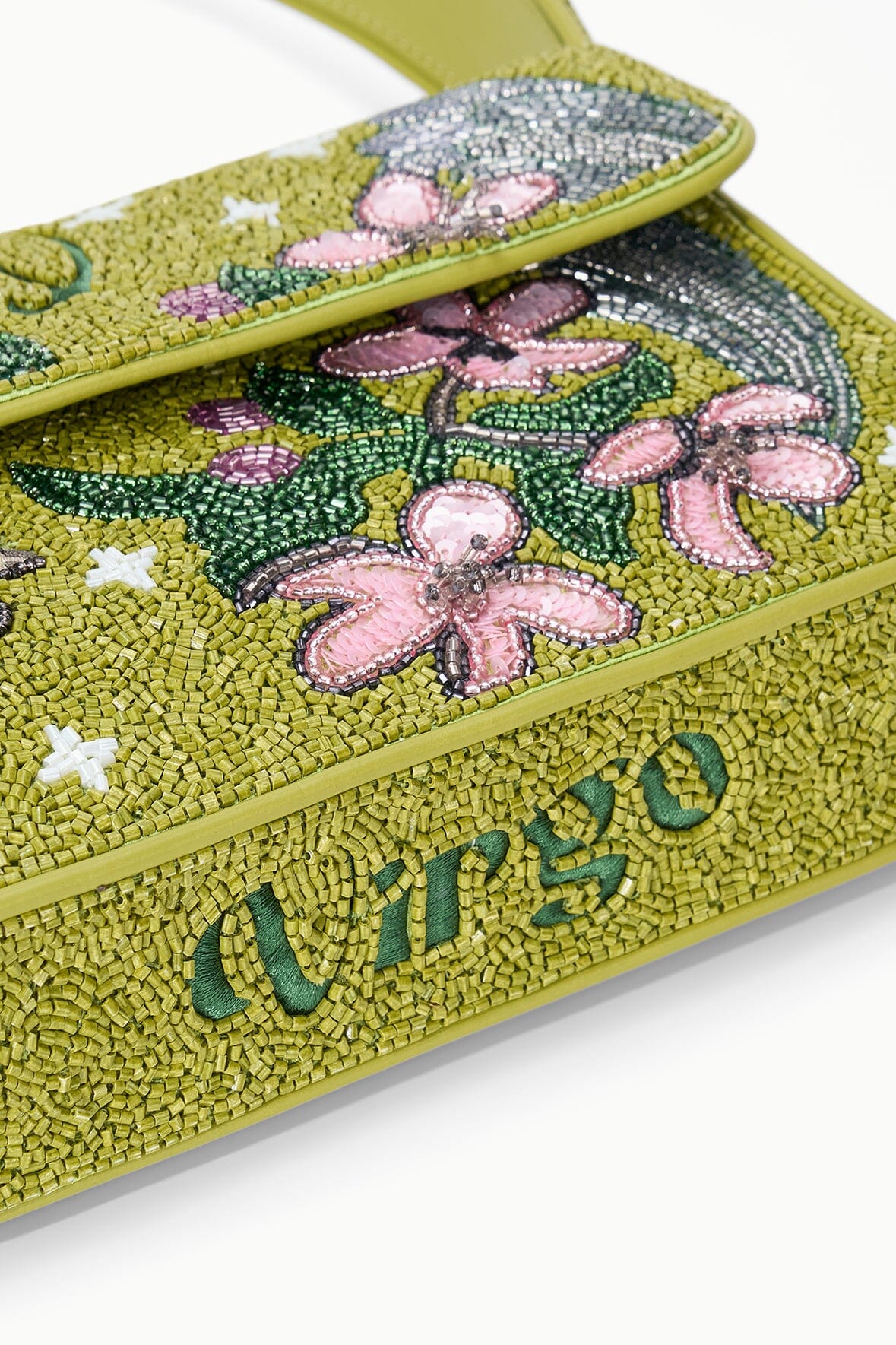 To celebrate new beginnings, we brought back our limited-edition Zodiac Tommy Bags. This style is hand beaded and features vegan leather piping, a magnetic snap closure and has a pocket on the back.