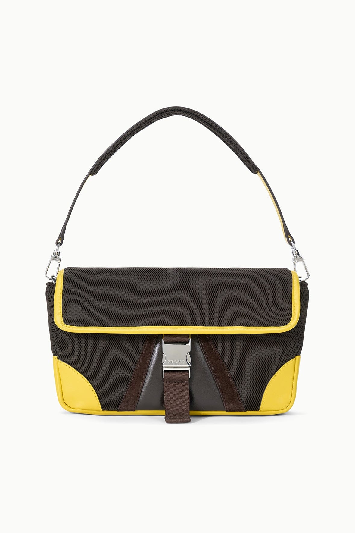 The Tony Shoulder Bag channels sporty appeal with a modern edge. Crafted from breathable air mesh with refined leather trim, it combines athletic functionality with polished style. The signature speed clip closure ensures quick, secure access—perfect for on-the-go wear.