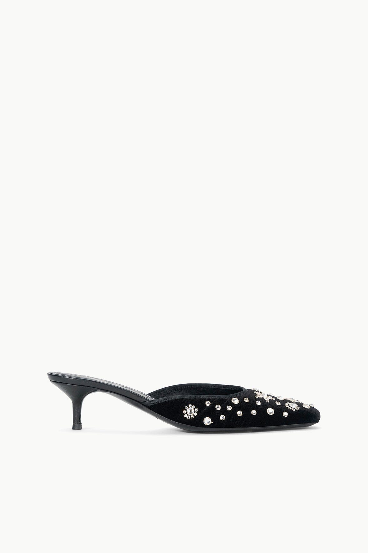 The Otto has been updated for the season with a kitten heel and beaded satin upper.