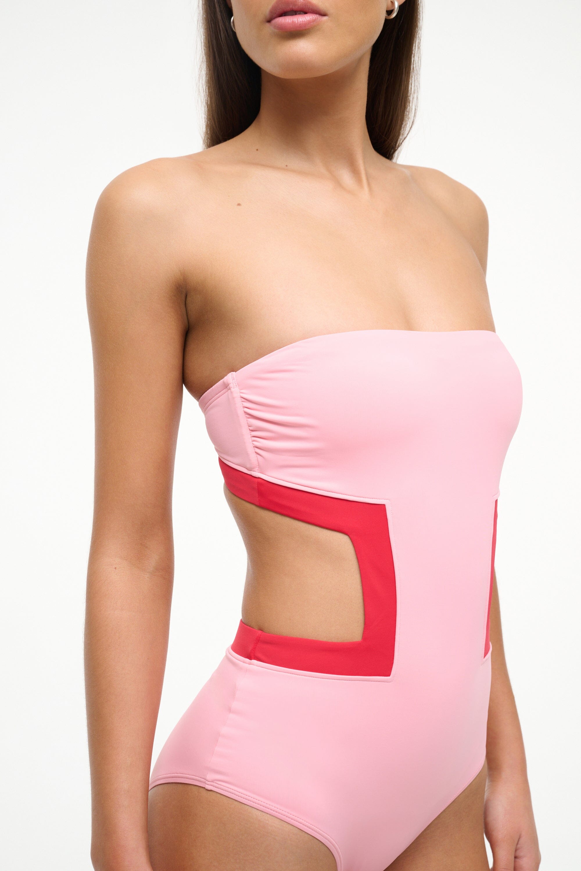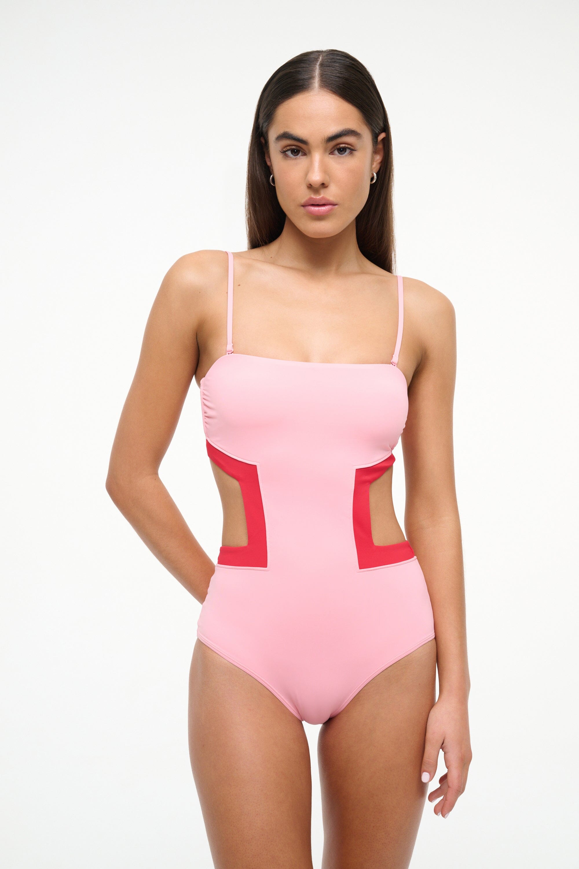 Inspired by our best-selling Dolce One Piece, the Haiku is a new one piece swim silhouette, featuring geometric cut-outs at the waist with colorblock detailing. This style features removable straps and moderate back coverage.
