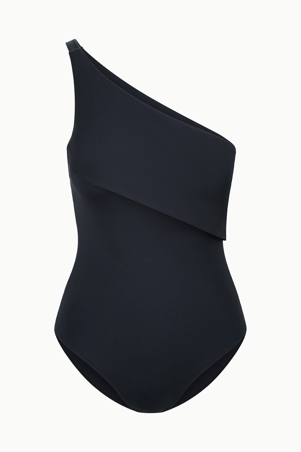The Lima is a flattering one-shoulder one piece, featuring a flutter detail at the chest and a side zip.