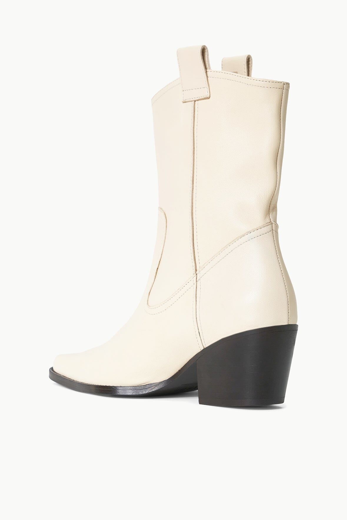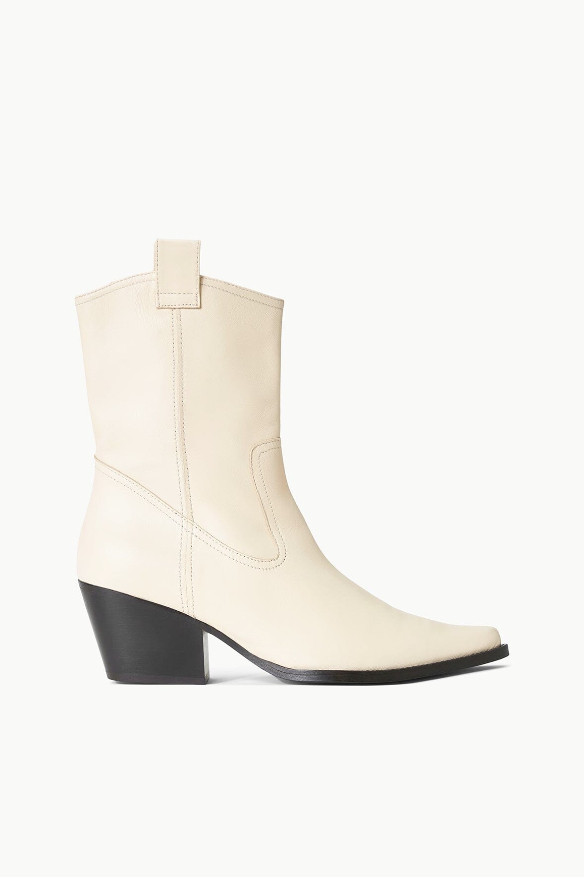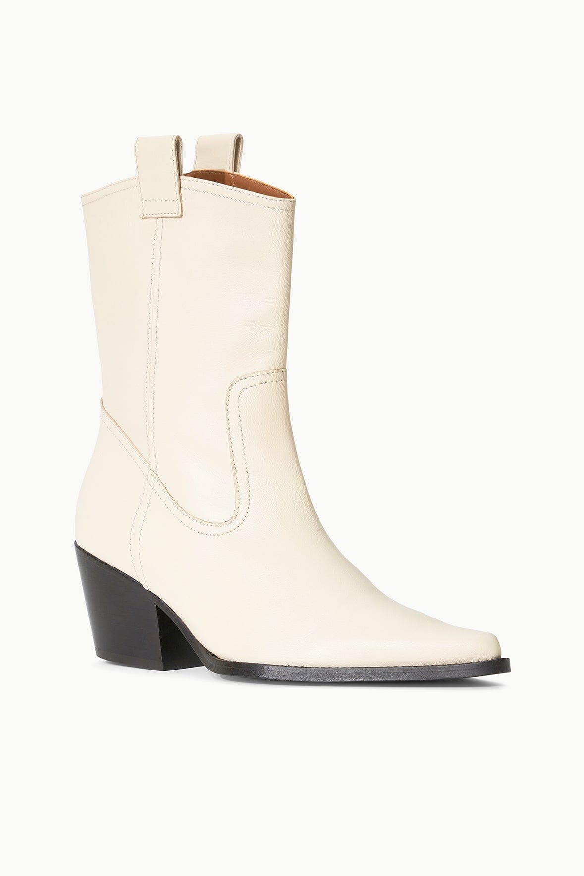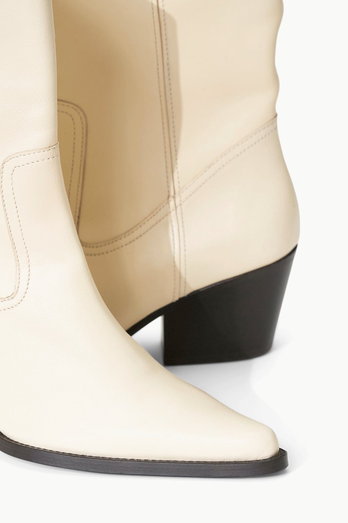 New for the season, the June is a true pointed toe cowboy boot made from soft leather. This style features western seaming and cuban heel.