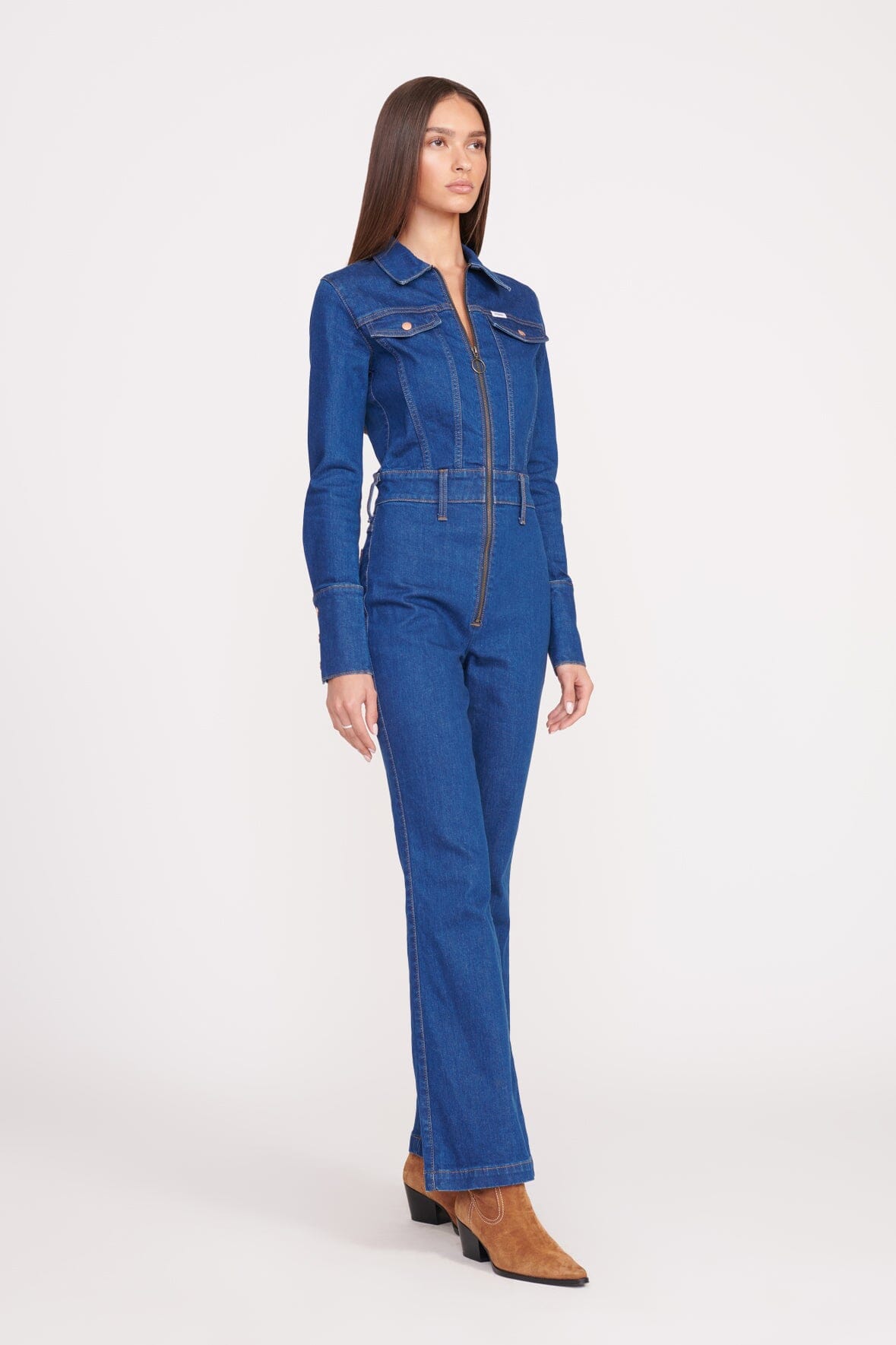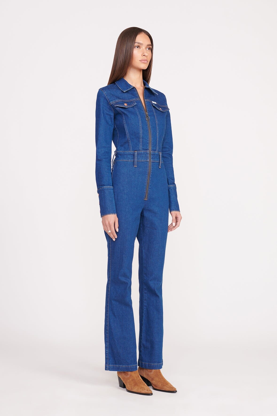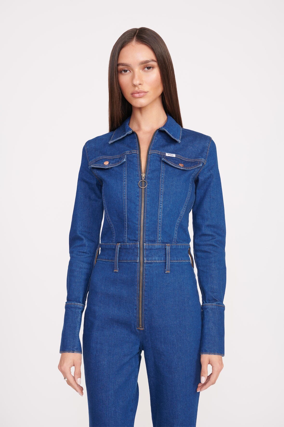 STAUD + WRANGLER THE BODY JUMPSUIT DARK RINSE