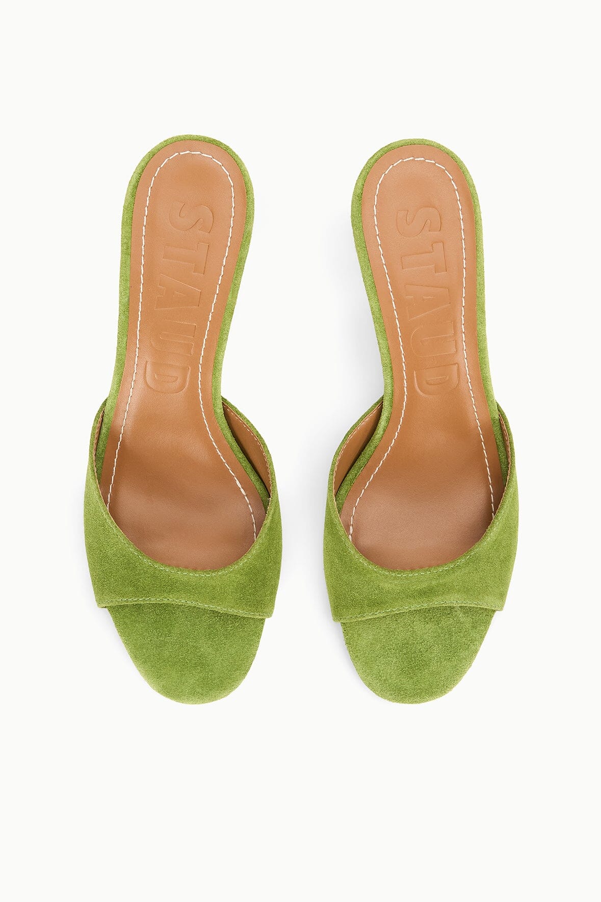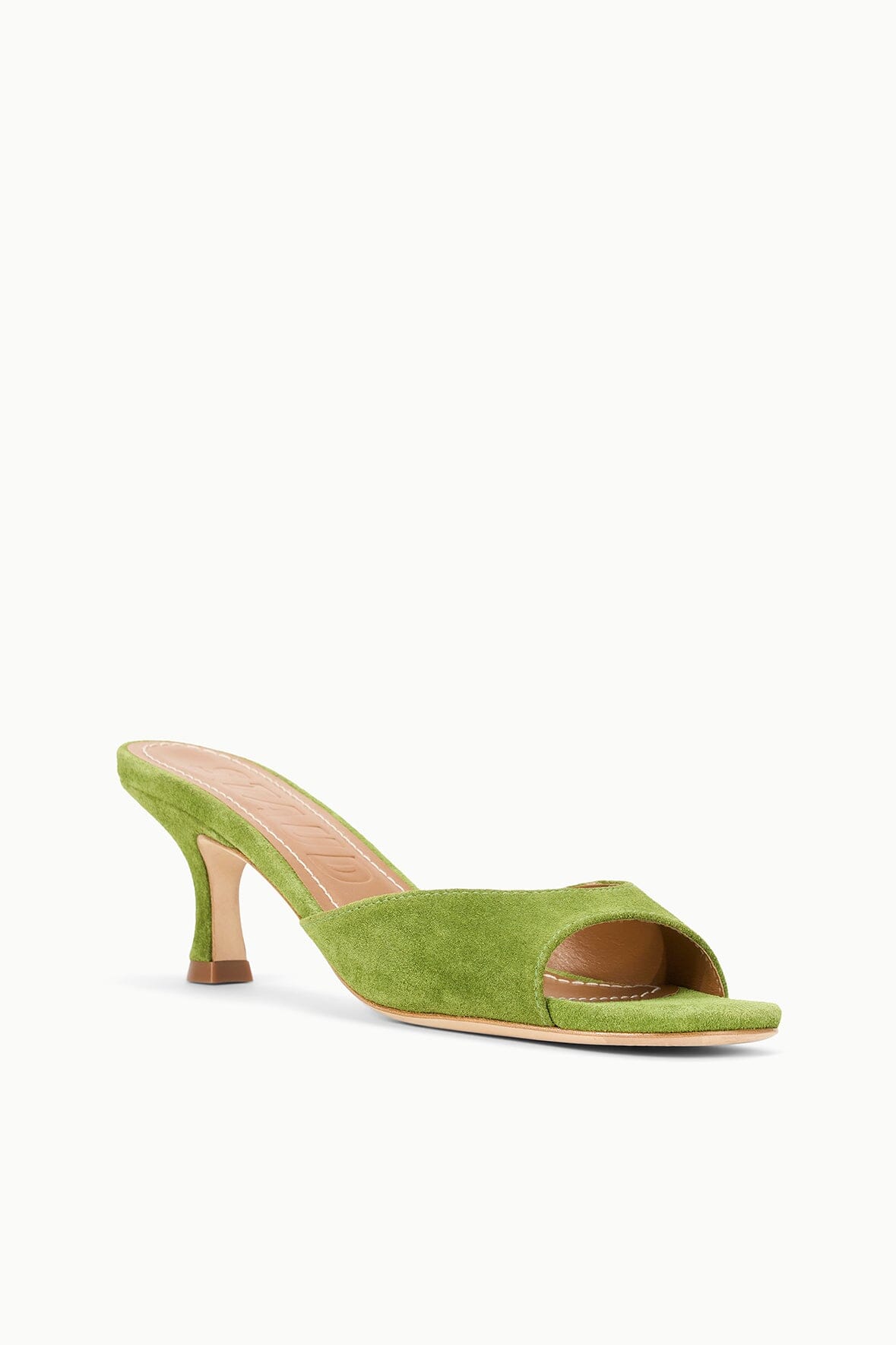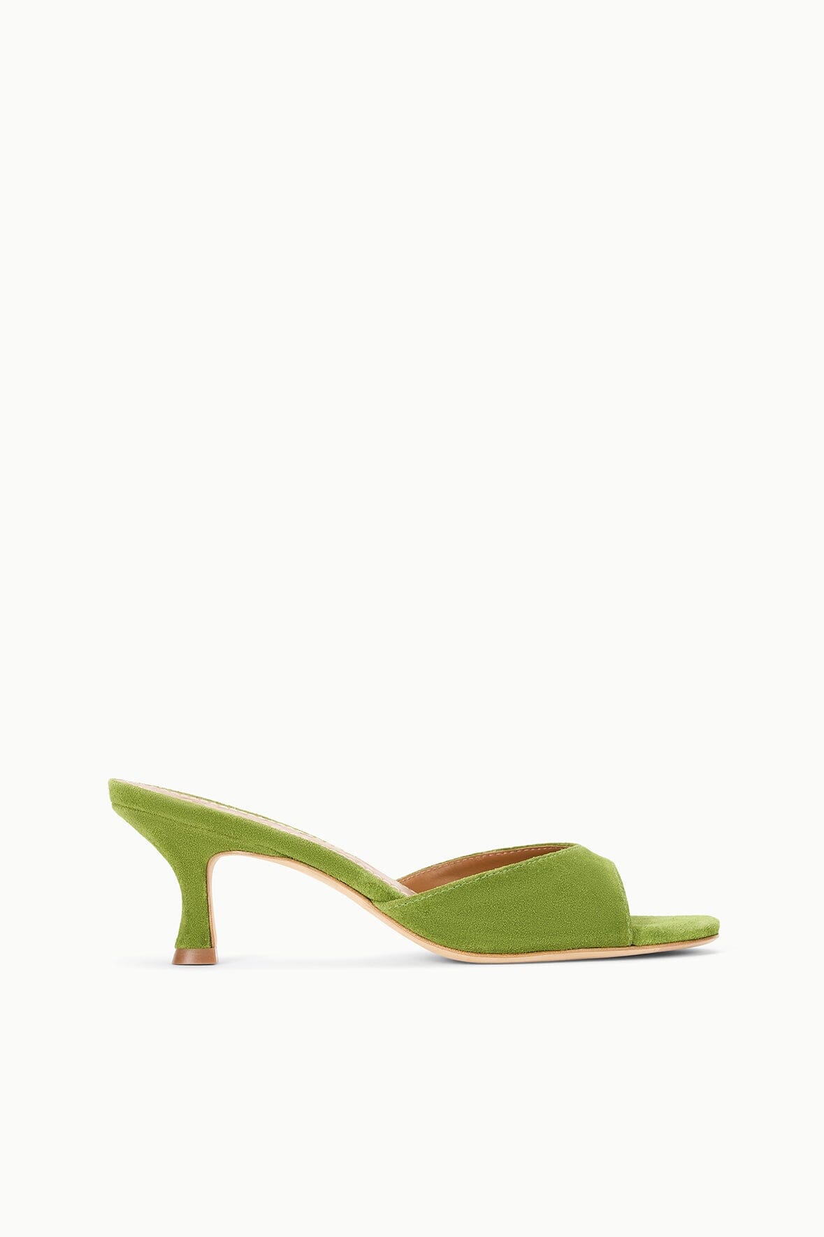 An open-toe mule featuring a suede upper, the Brigitte is an essential kitten heel for versatile dressing.