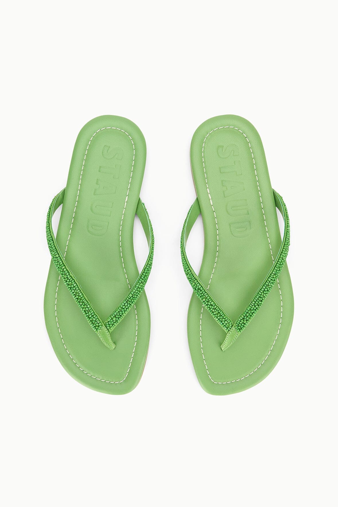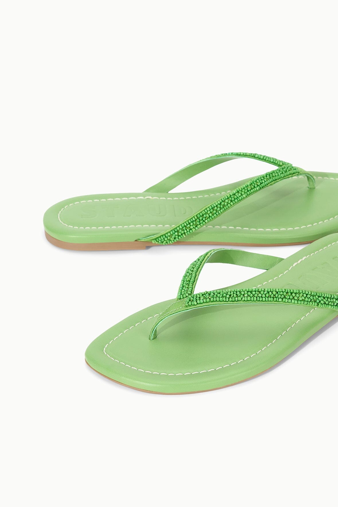 The Freja Thong is our new leather sandal for the season, crafted in buttery nappa leather with a beaded upper.