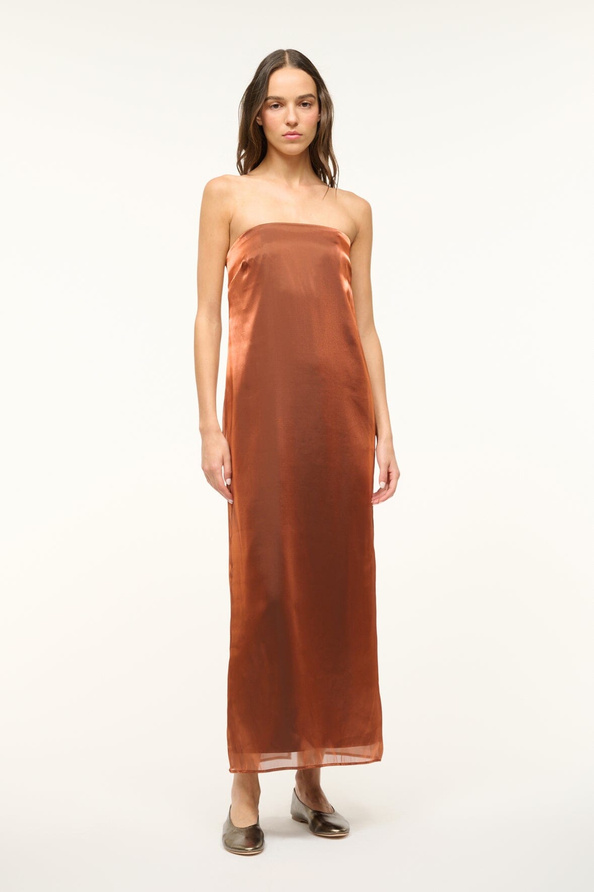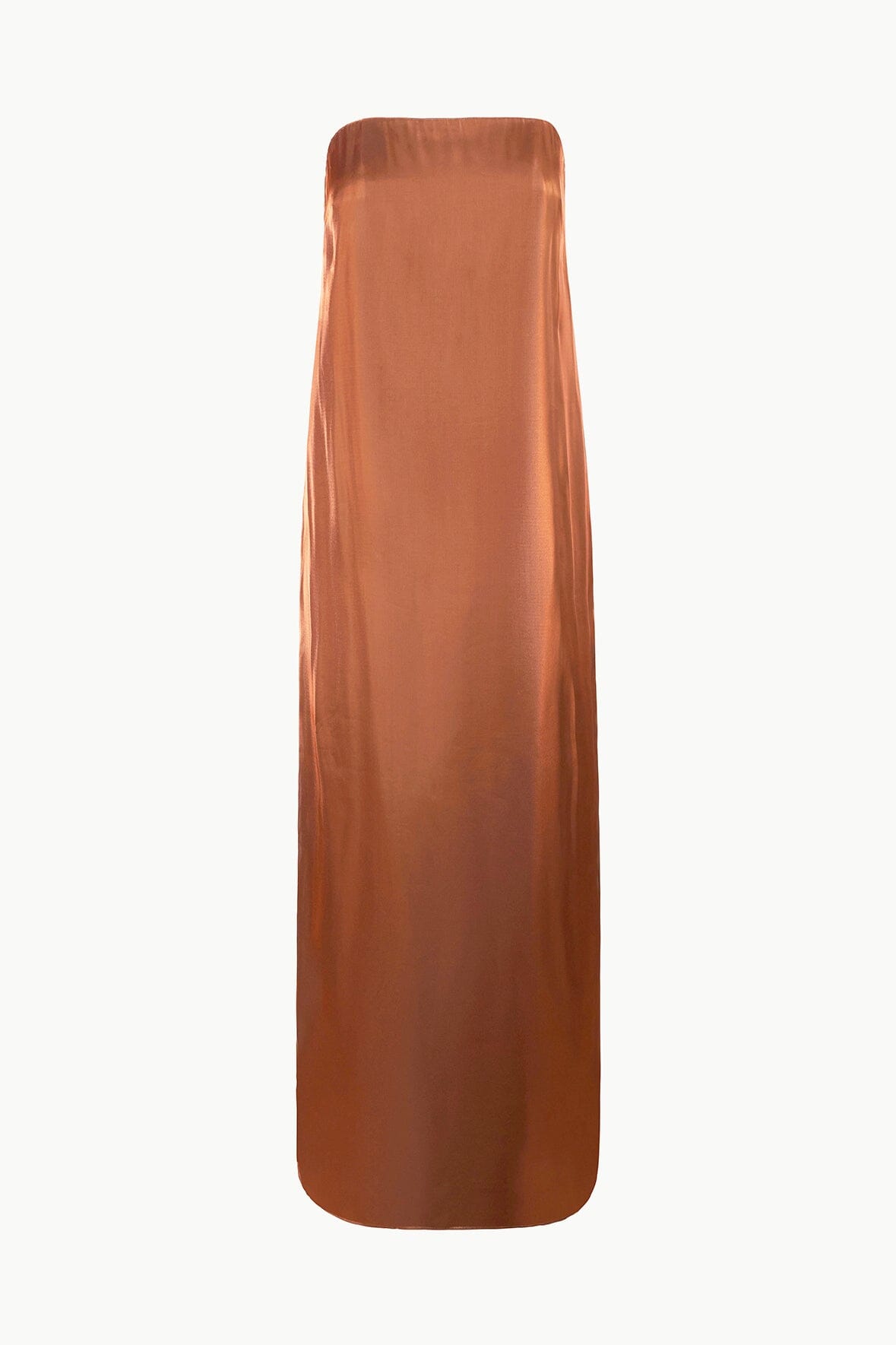 Our best-selling Casey Dress has been reimagined for the Fall season; crafted from an iridescent organza, this strapless gown features a relaxed silhouette throughout the body, a back slit, and a hidden zipper.