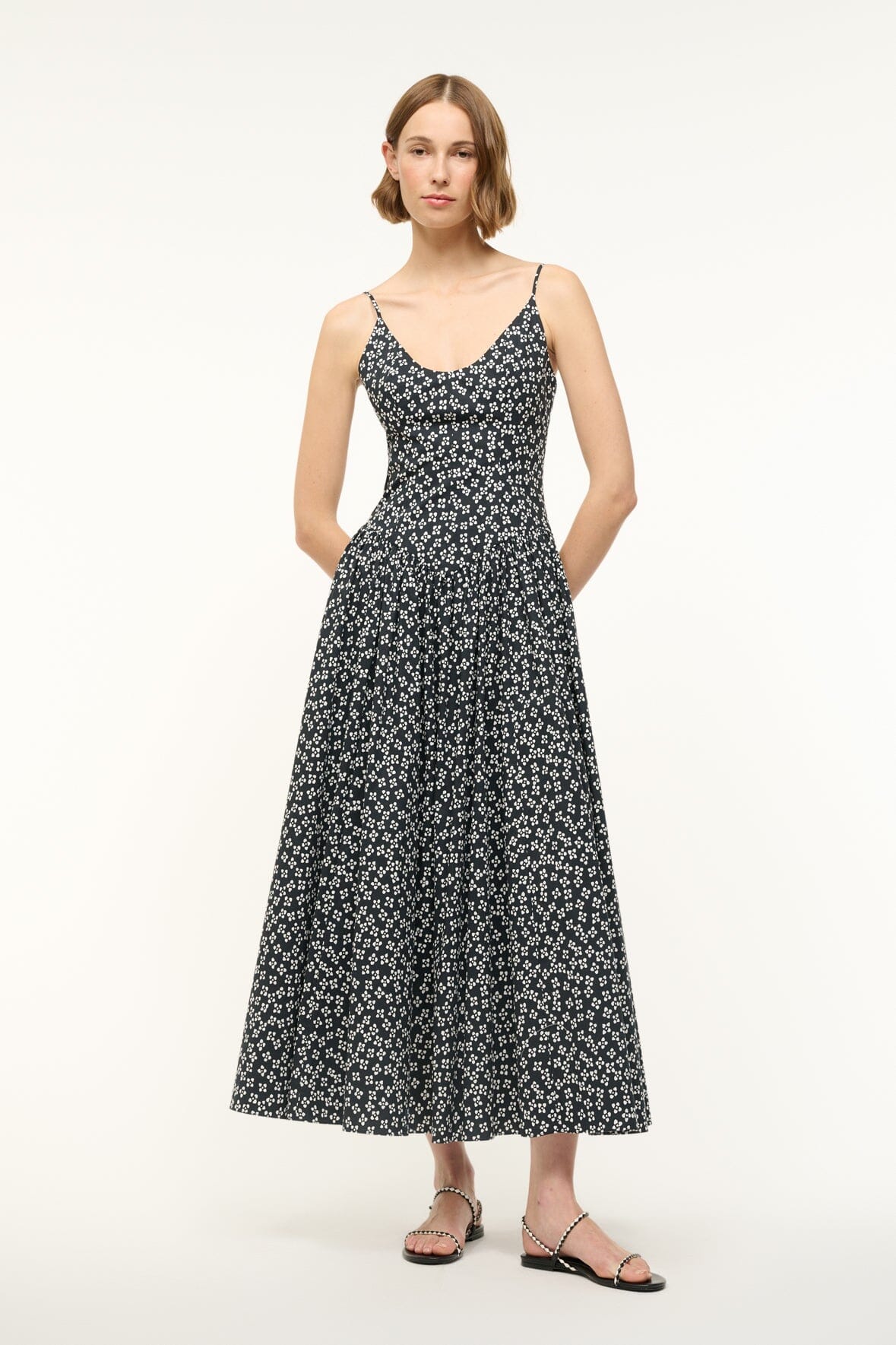 A full length poplin dress with a fitted bodice and drop waist, this style is made from our slightly stretchy cotton poplin fabric to keep you cool and comfortable through the warm weather months.