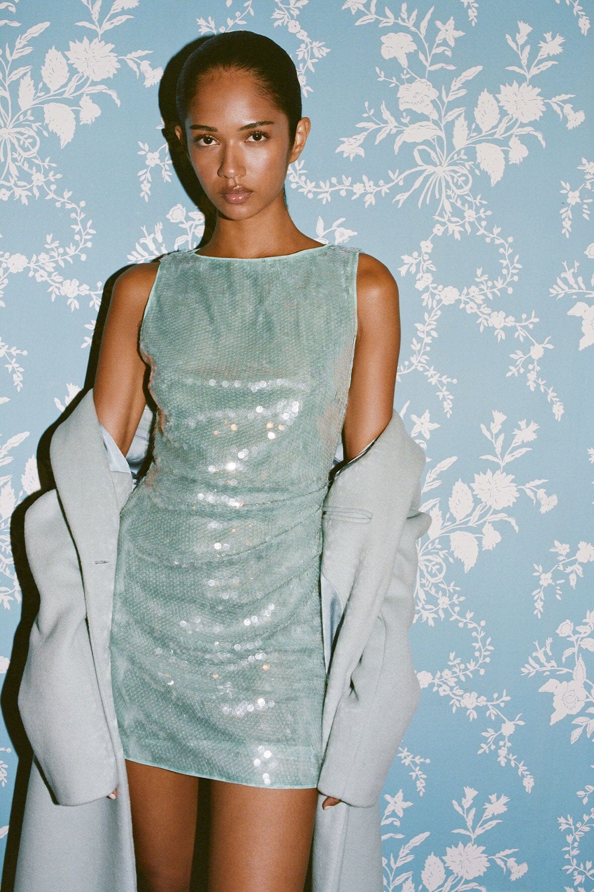 The Eton Dress is a boatneck mini dress with asymmetric draping at the waist and a hidden center back zipper.