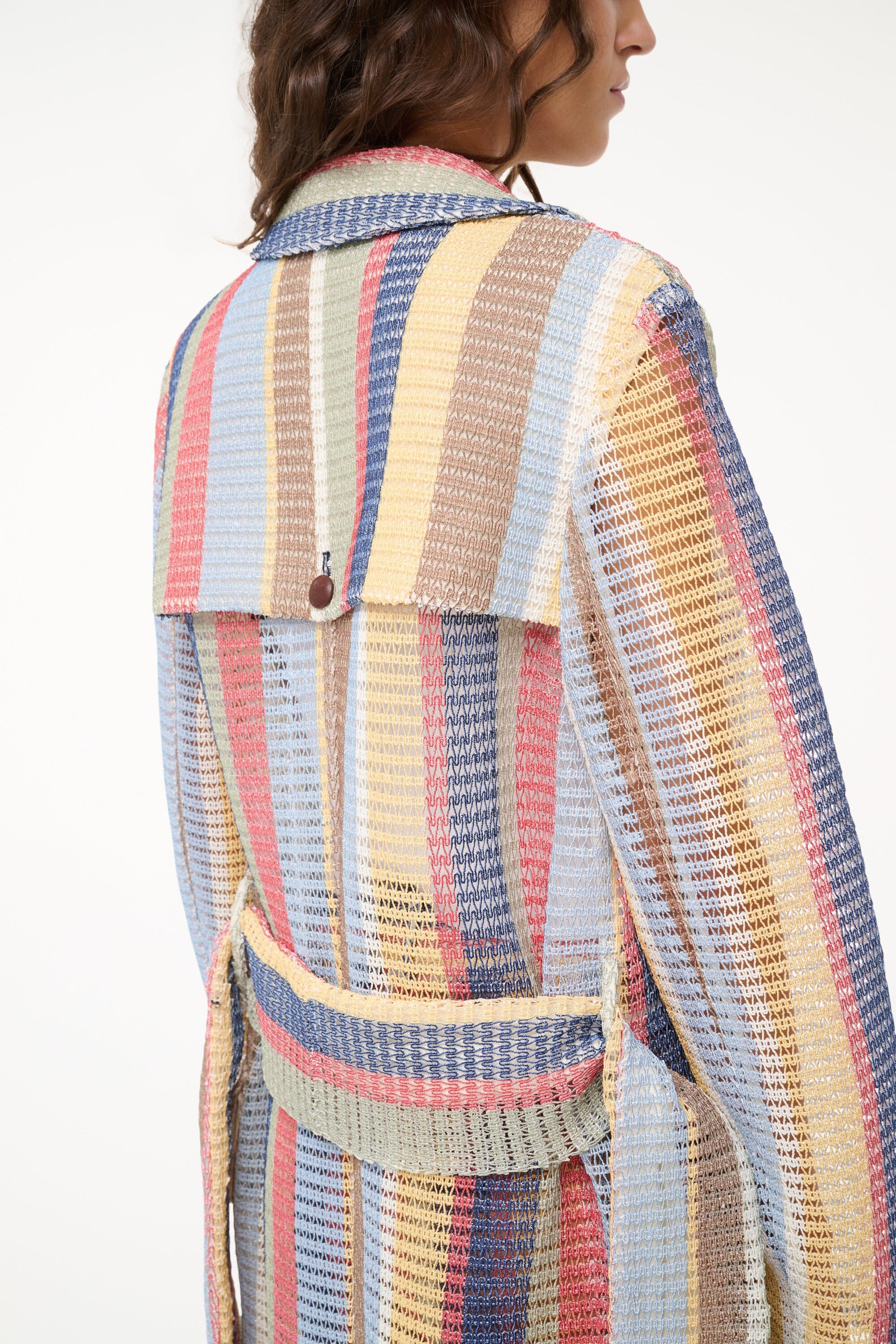 The Freddie Trench is a Summer statement piece - an unlined trench coat crafted in our coiled lace, this style features front pockets, a wide waist belt, and a single button closure.