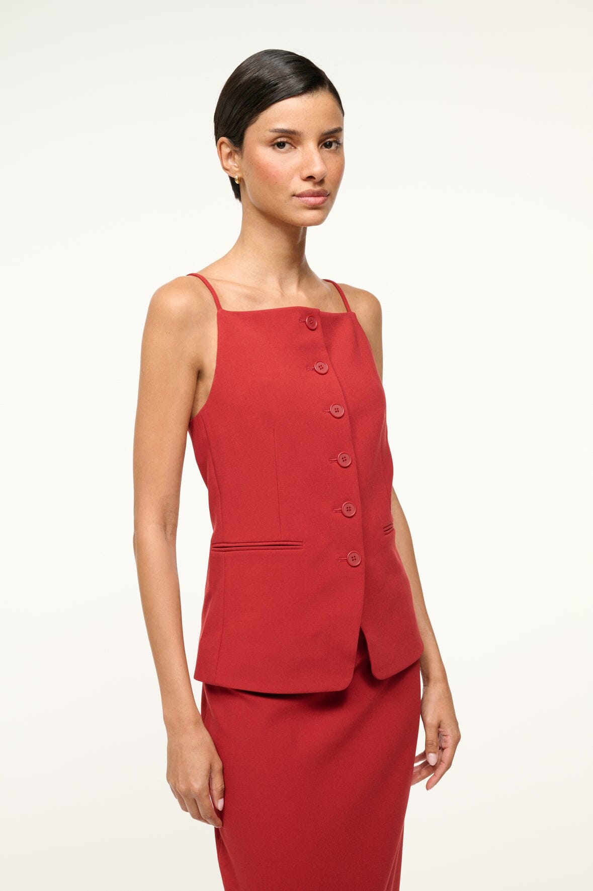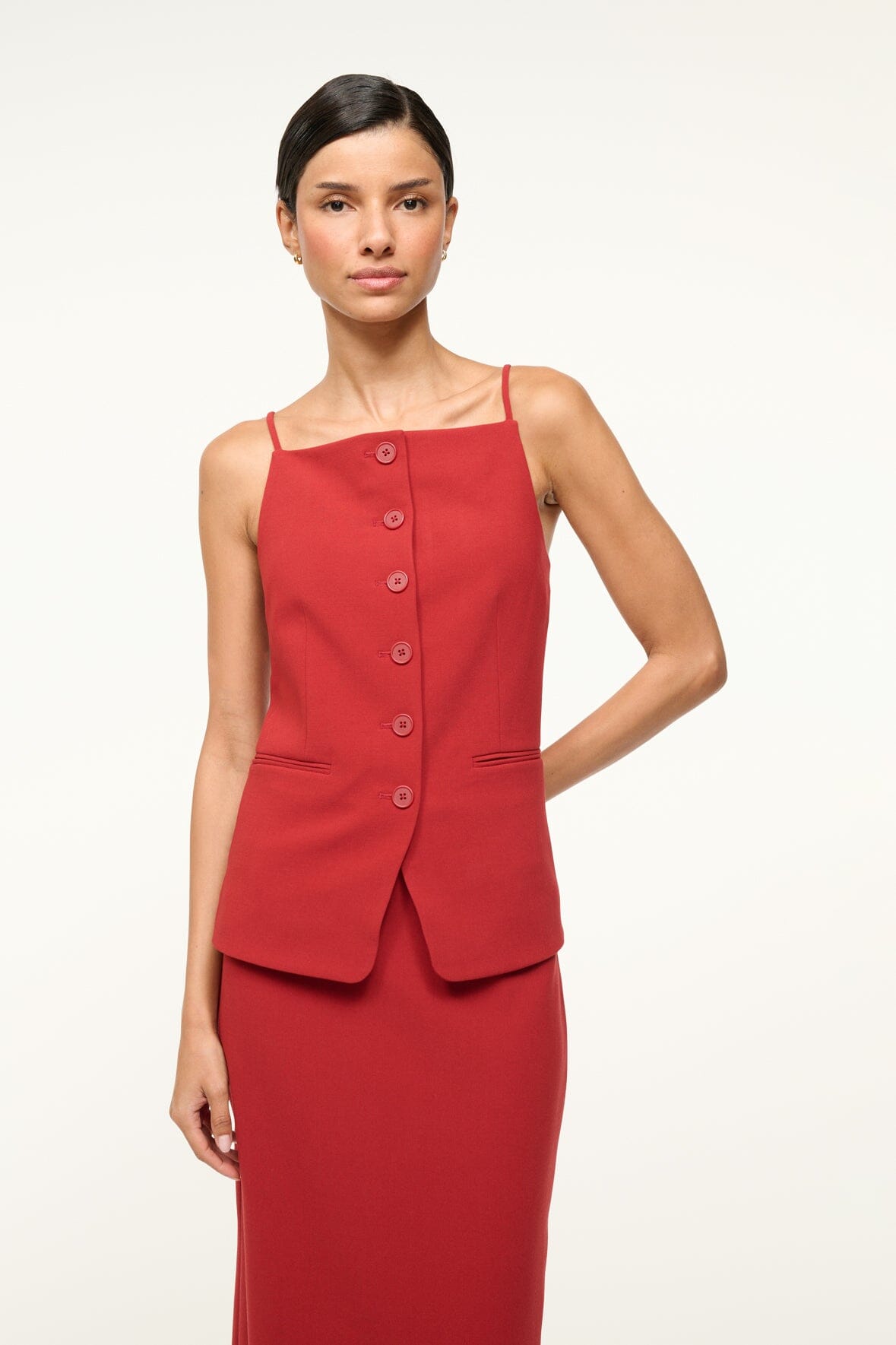 A tailored tank vest with front button closures and a square neckline, the Una Top features front welt pockets and a relaxed silhouette.