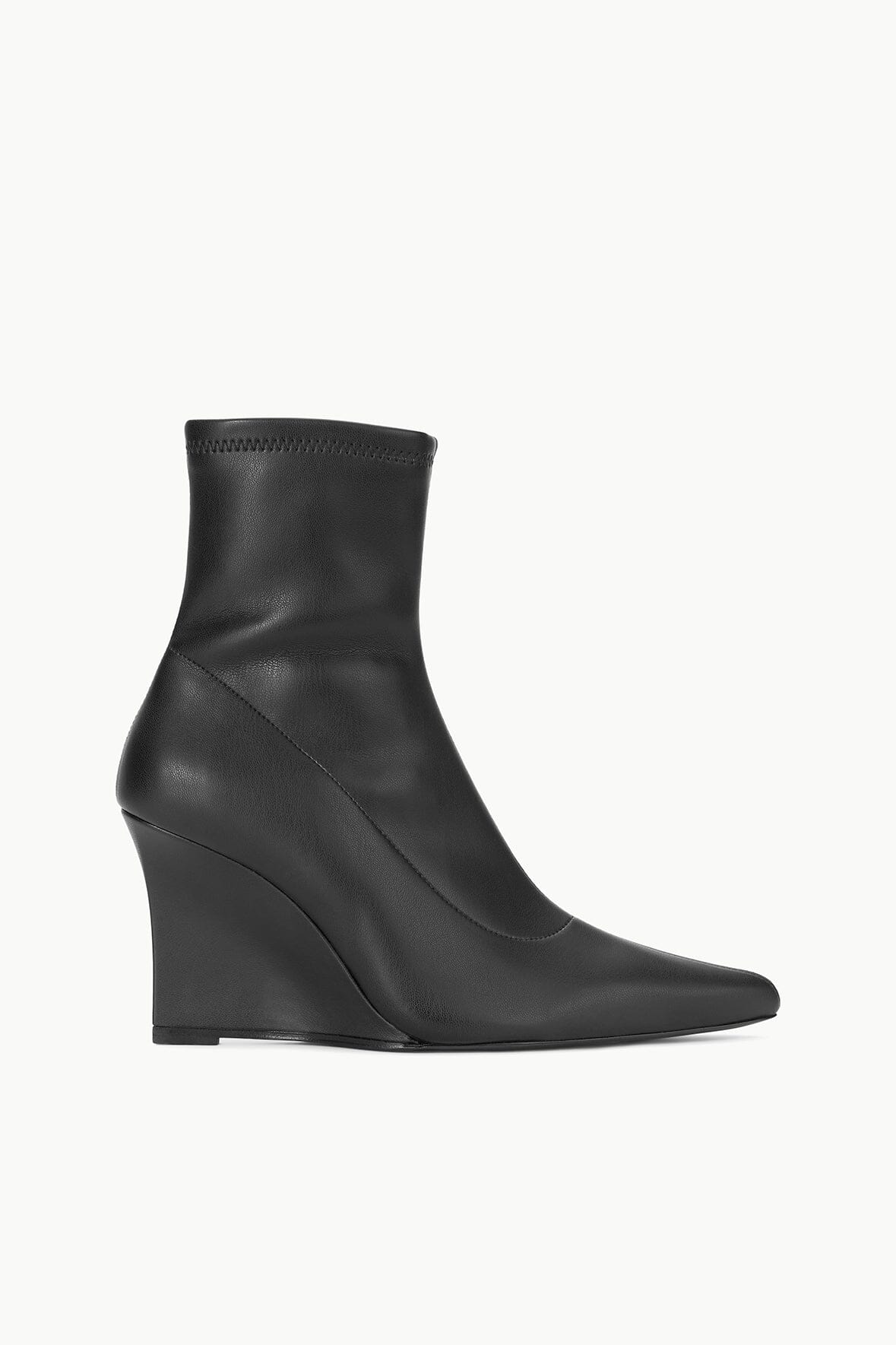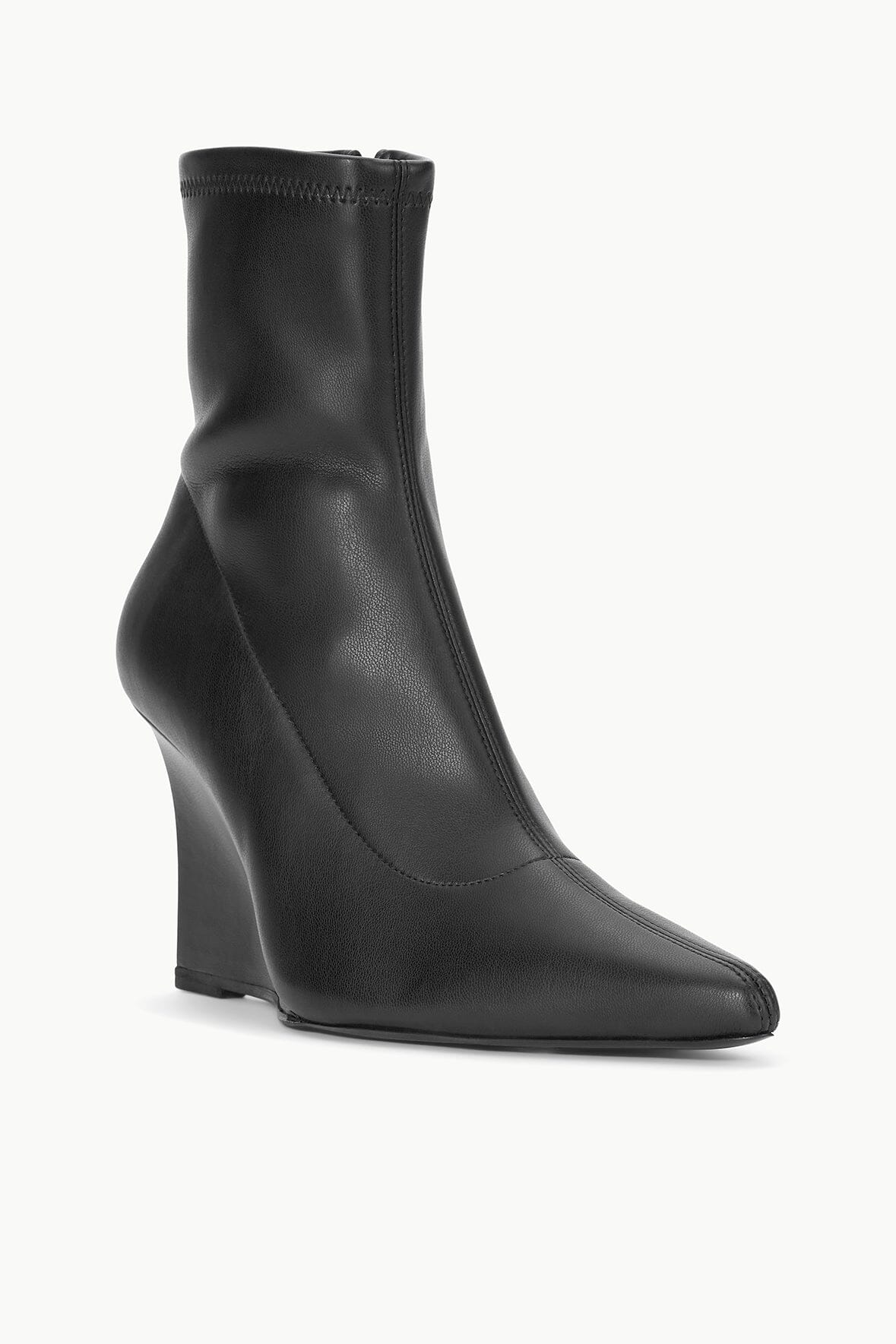 A pointed toe ankle boot, the Vesper offers a stretchy, glove-like fit over a comfortable knife wedge heel.
