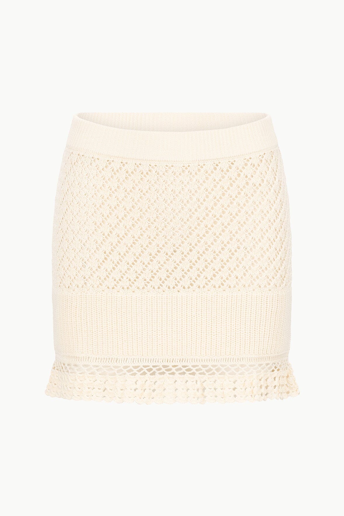 The Wolfgang Skirt is a mixed crochet knit skirt that pairs perfectly with our Vienna Sweater. This is a pull-on style skirt and has an inner lining.