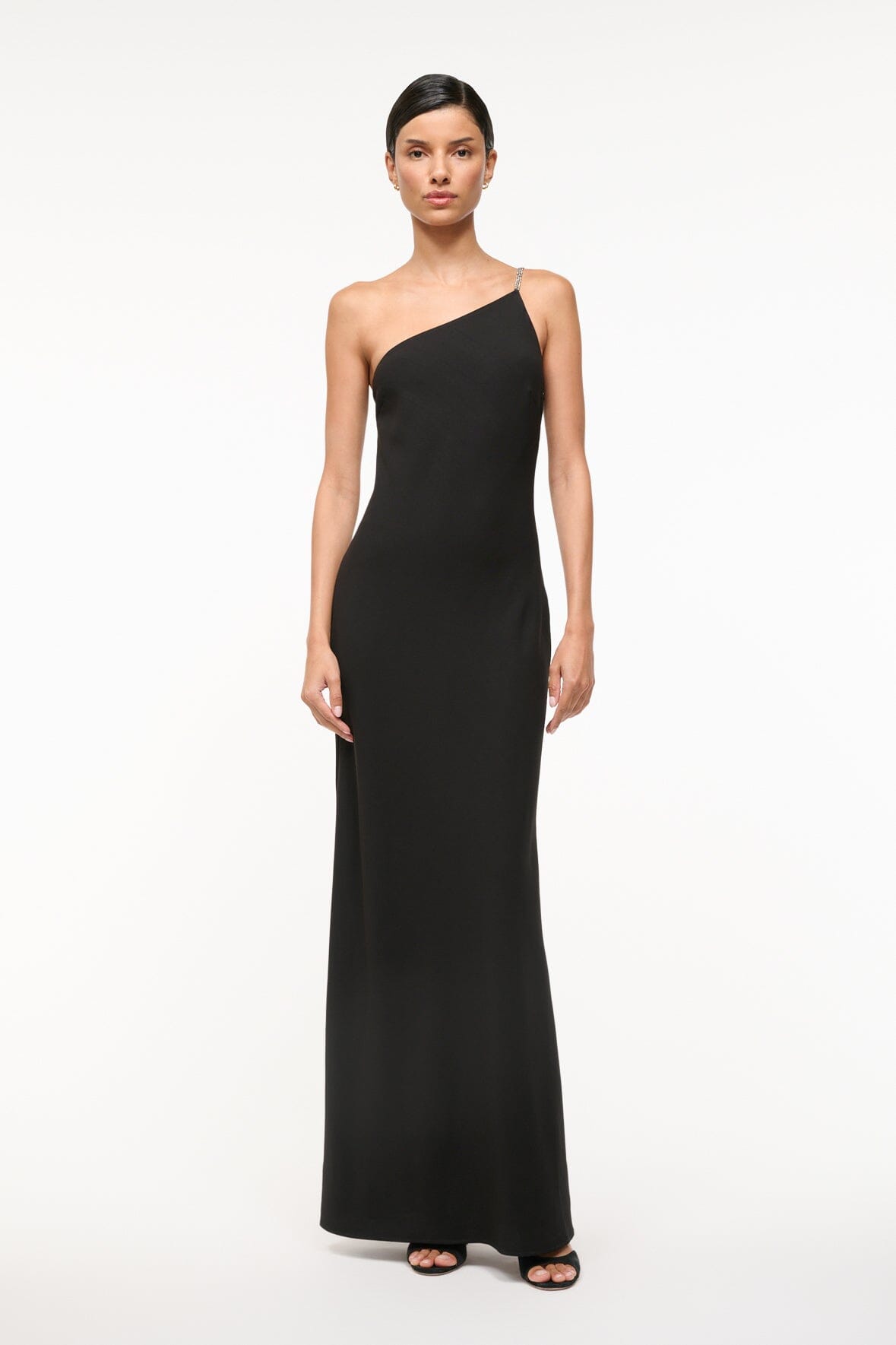 The Elodie Dress is a gorgeous one-shoulder slip dress featuring a maxi length skirt and a back slip for ease of movement.