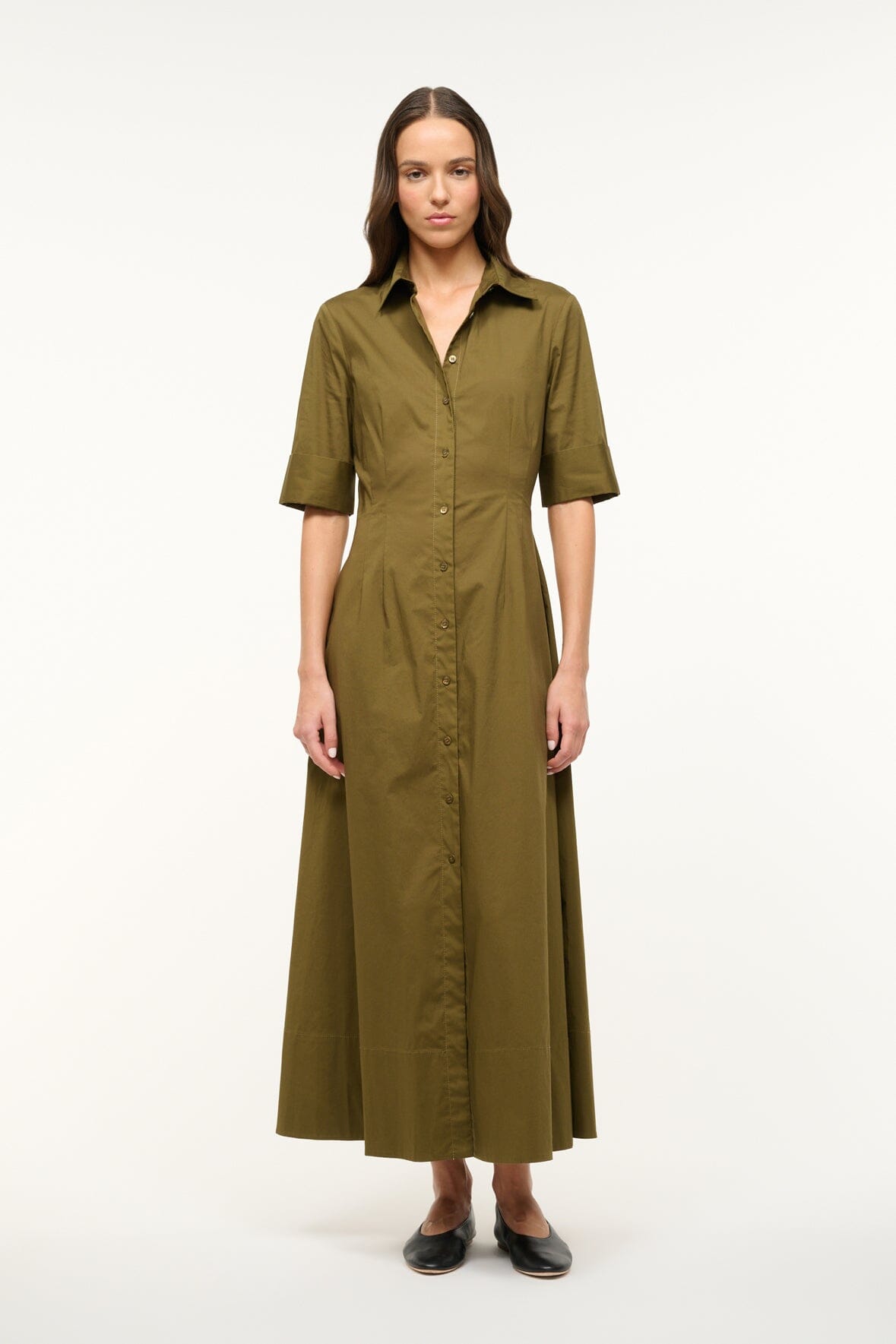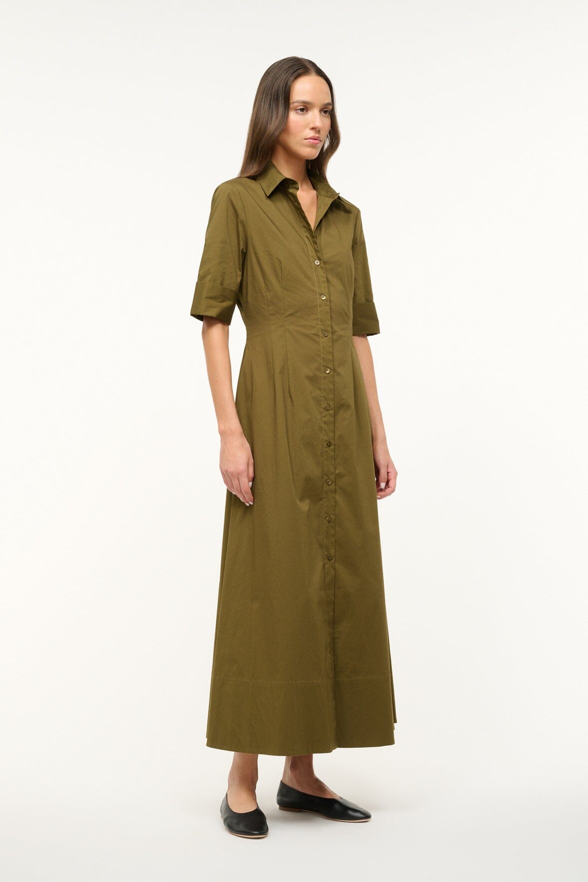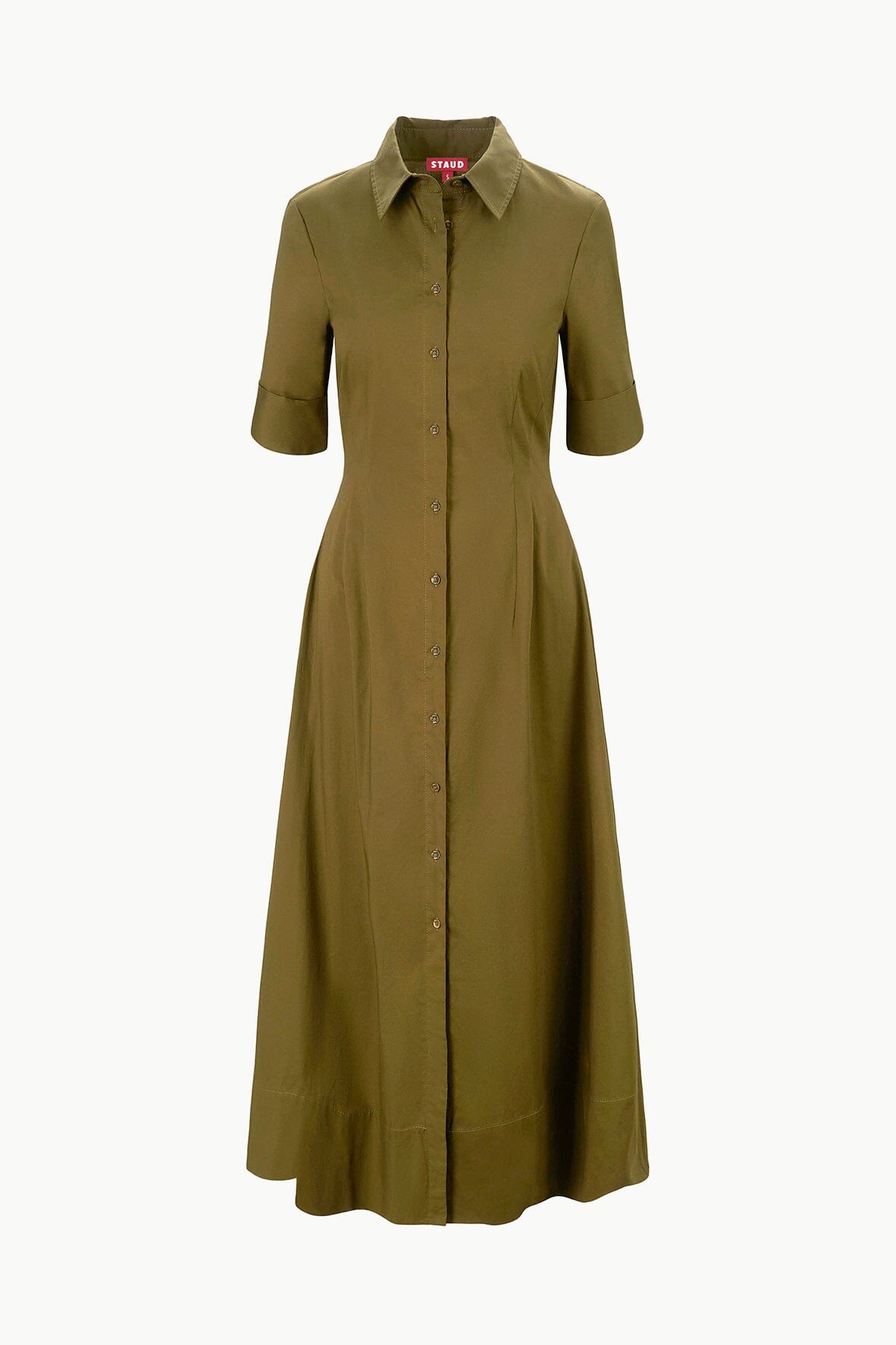 A maxi shirt dress made out of stretchy cotton poplin, the Joan Dress is a modern yet polished take on a classic.