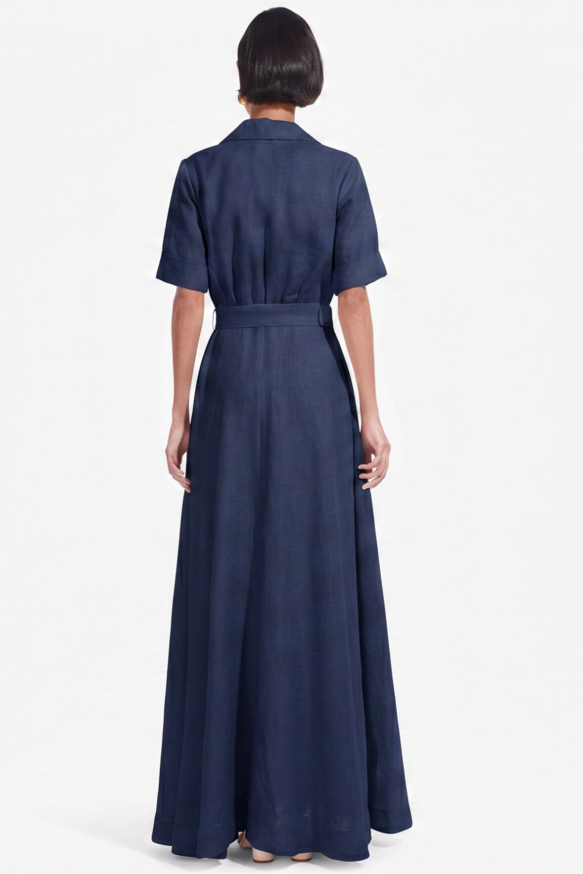 Updated for the season, Millie is a full length dress made out of natural linen. This dress features two front pockets, a button down front and matching belt.