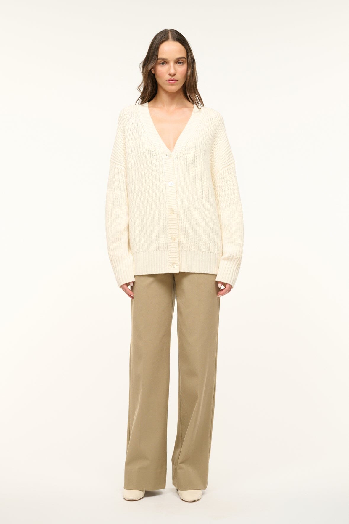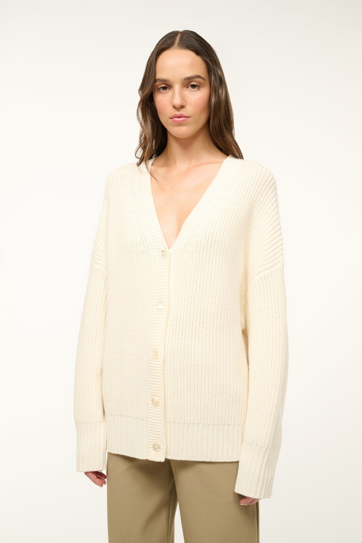 The Matilda Cardigan is an oversized cozy cardigan. This style is available in a soft merino knit and features rib knit cuffs and hem.