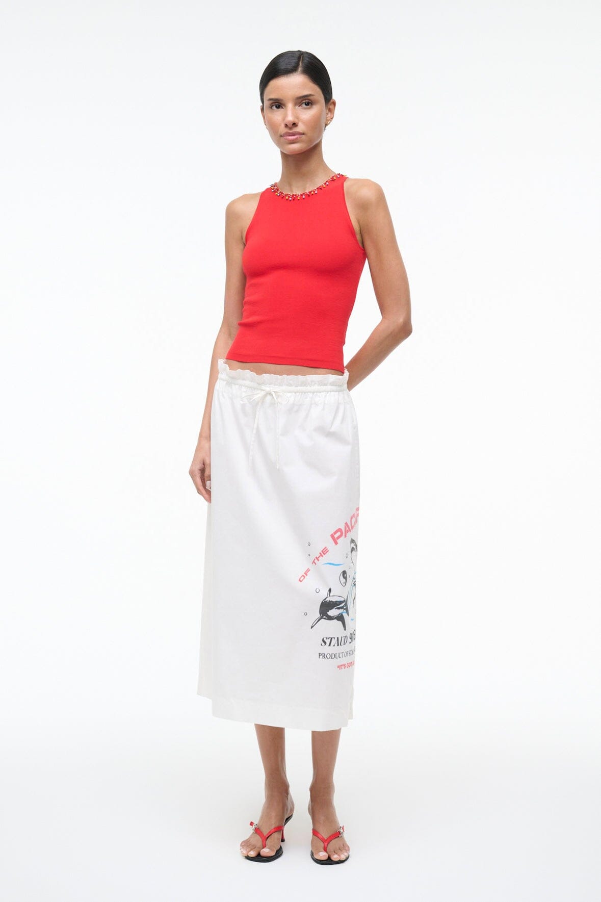 A sleek mid-rise skirt with an adjustable drawstring waist for a personalized fit. Made from stretch poplin, it offers structure and comfort in one piece. Dress it up or down—this wardrobe essential works with everything.