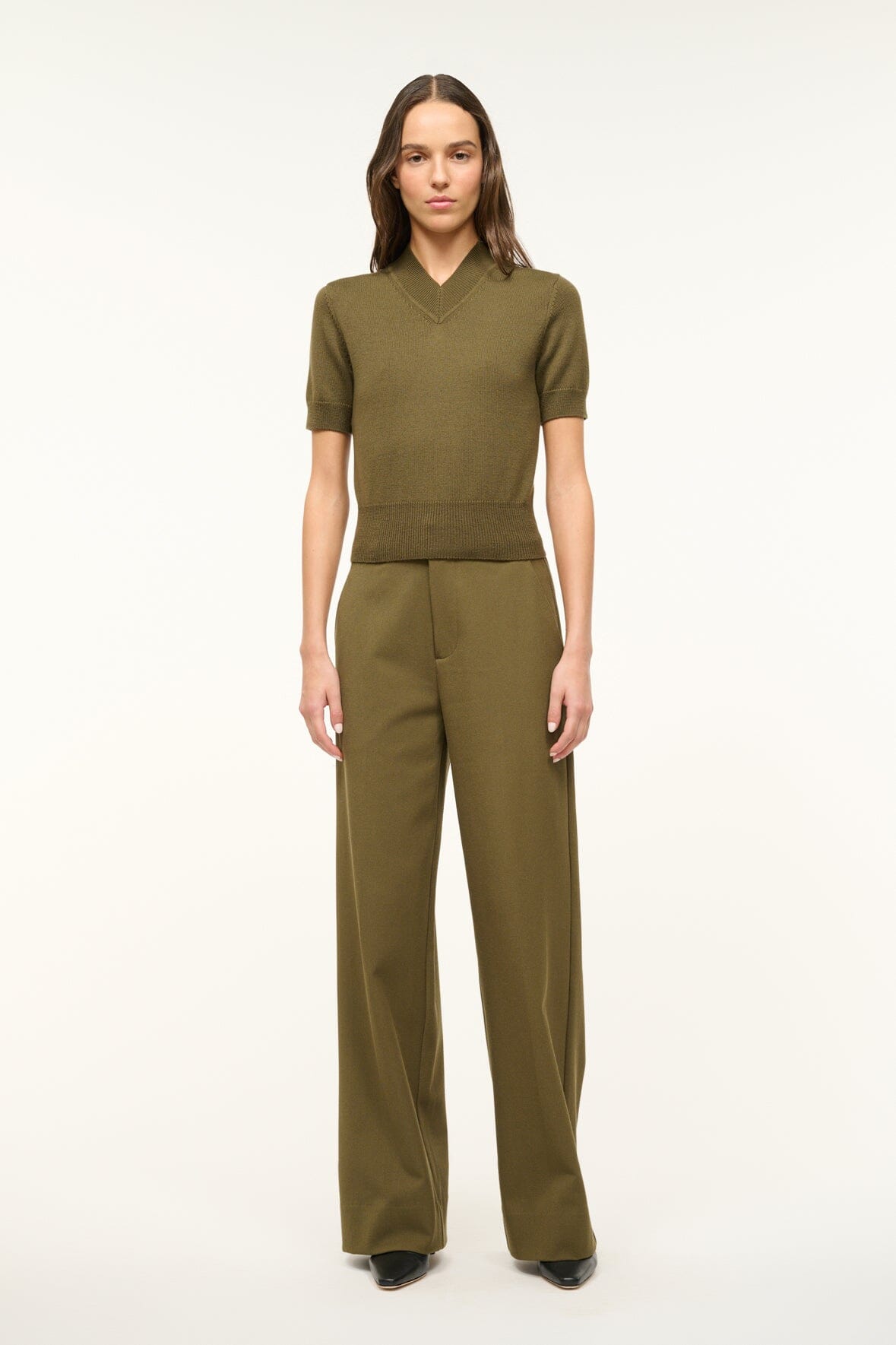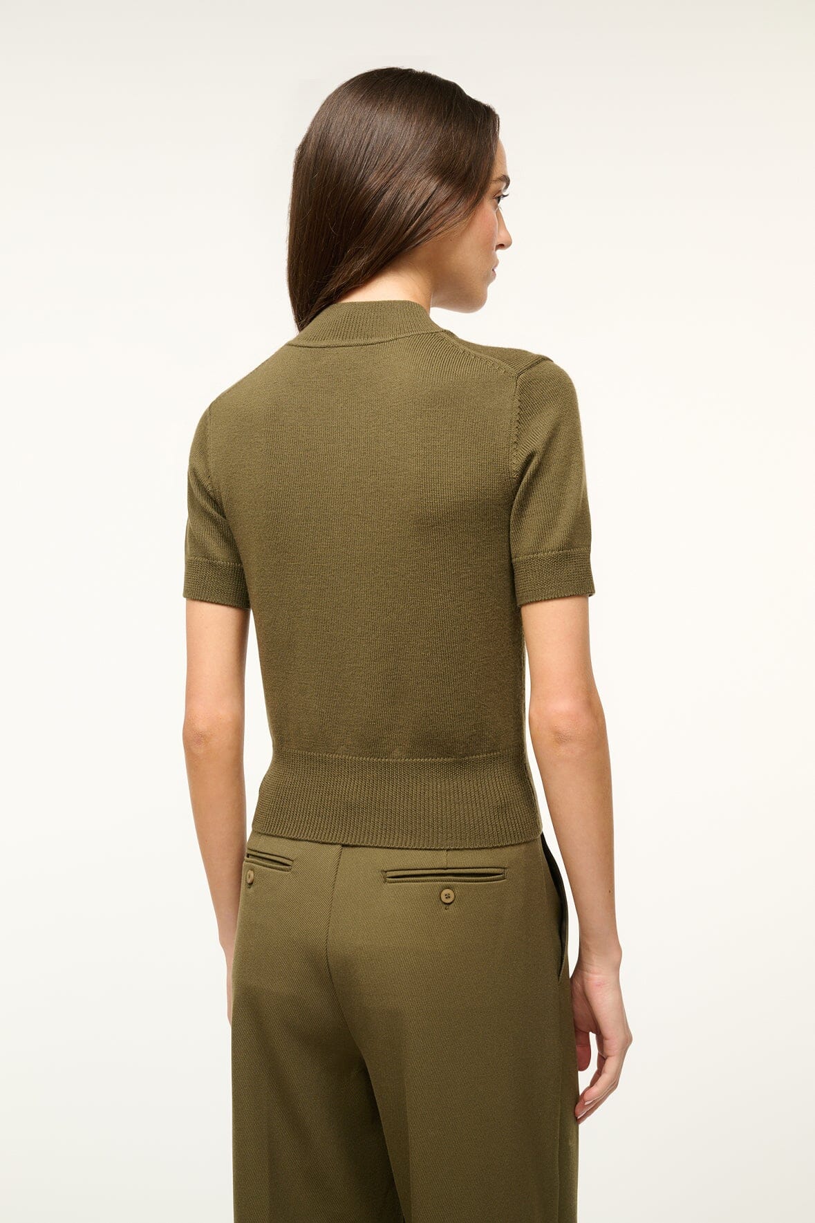 The Sullivan Top is a lightweight knit tee with high v-neckline perfect for layering. This style is crafted from 100% merino wool and features a rribbed collar, cuffs and hem. Wear the Sullivan Top on its own or under the matching Baxter Cardigan for a coordinating set.