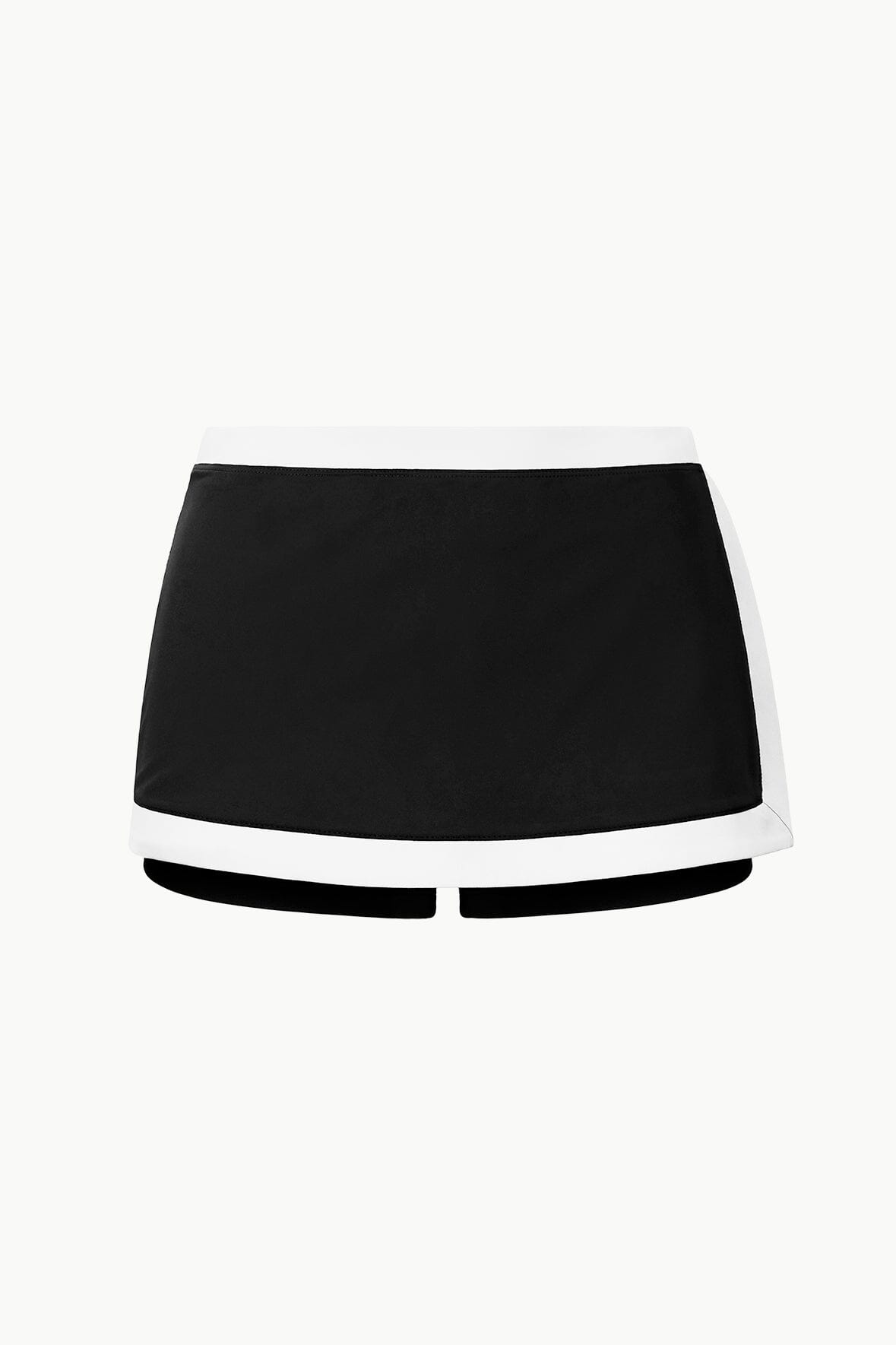 The Nell Swim Skirt is a high waisted swimsuit bottom with a faux wrap skirt. The style features a short style bottom for slightly more coverage.
