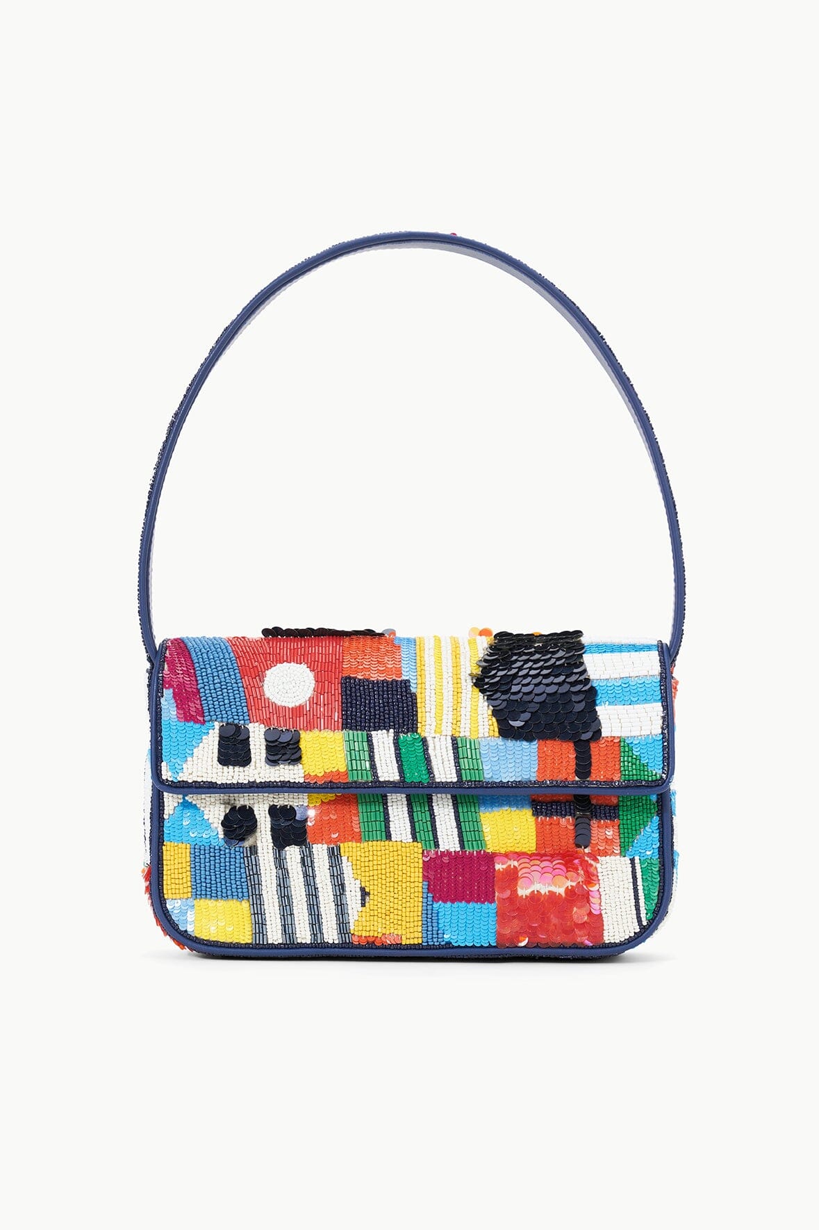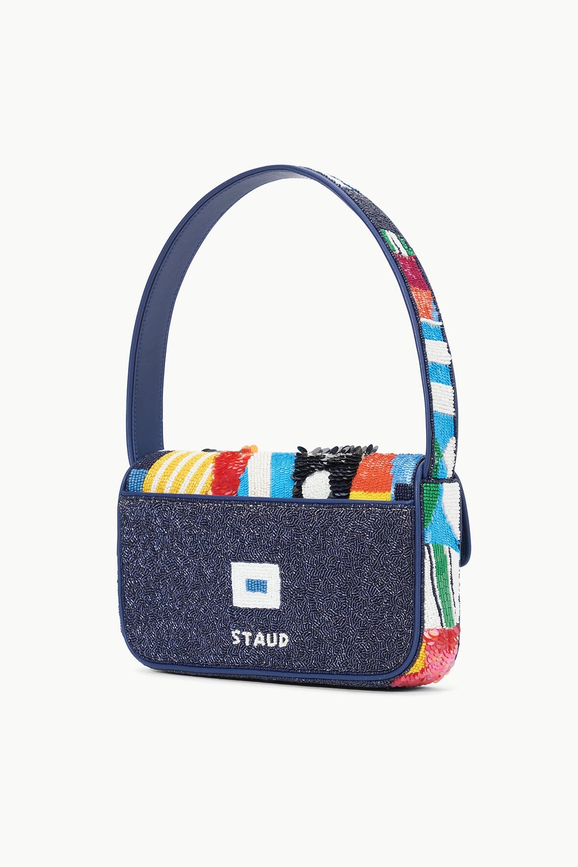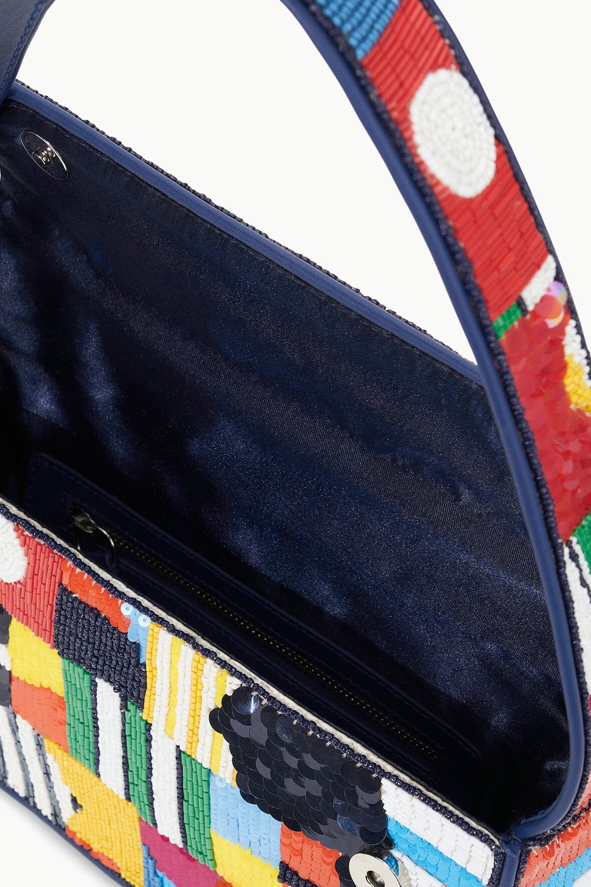 The Tommy Bag has been updated for Summer in a nautical inspired design. This style is hand beaded and features a single flap closure, inner zip pouch and has a pocket on the back.