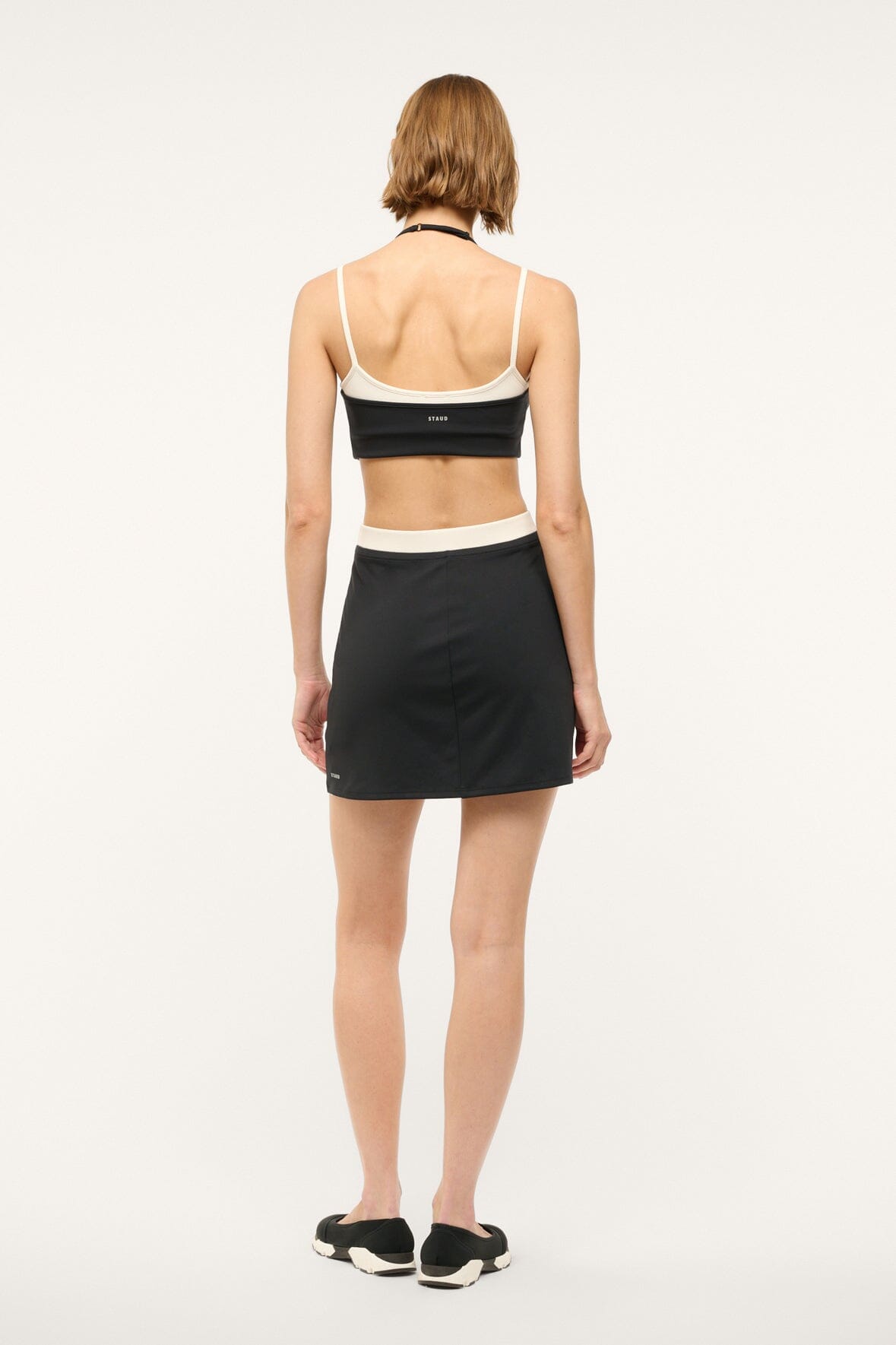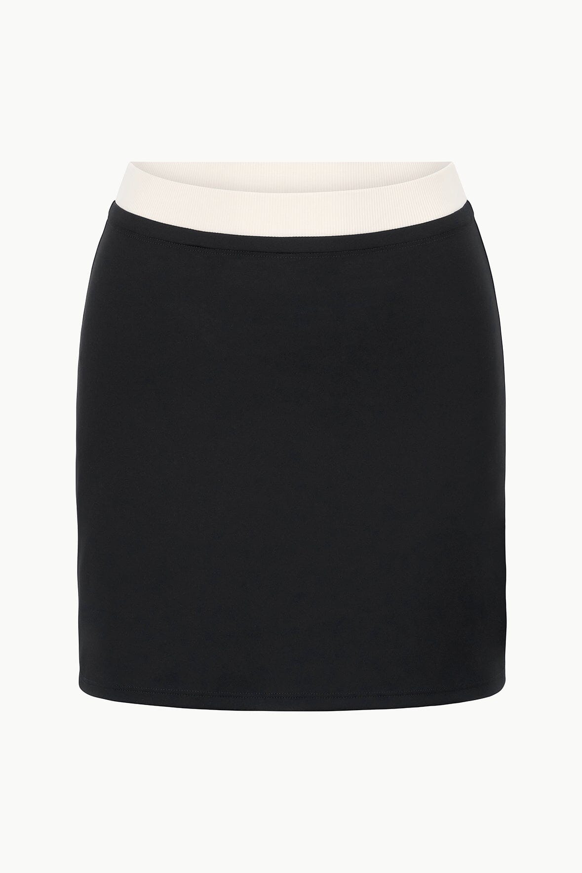 A combo mini skirt with contrast rib waistband and built-in shorts. The Catch Skirt is made from stretchy shapewear for an easy, flattering feel.