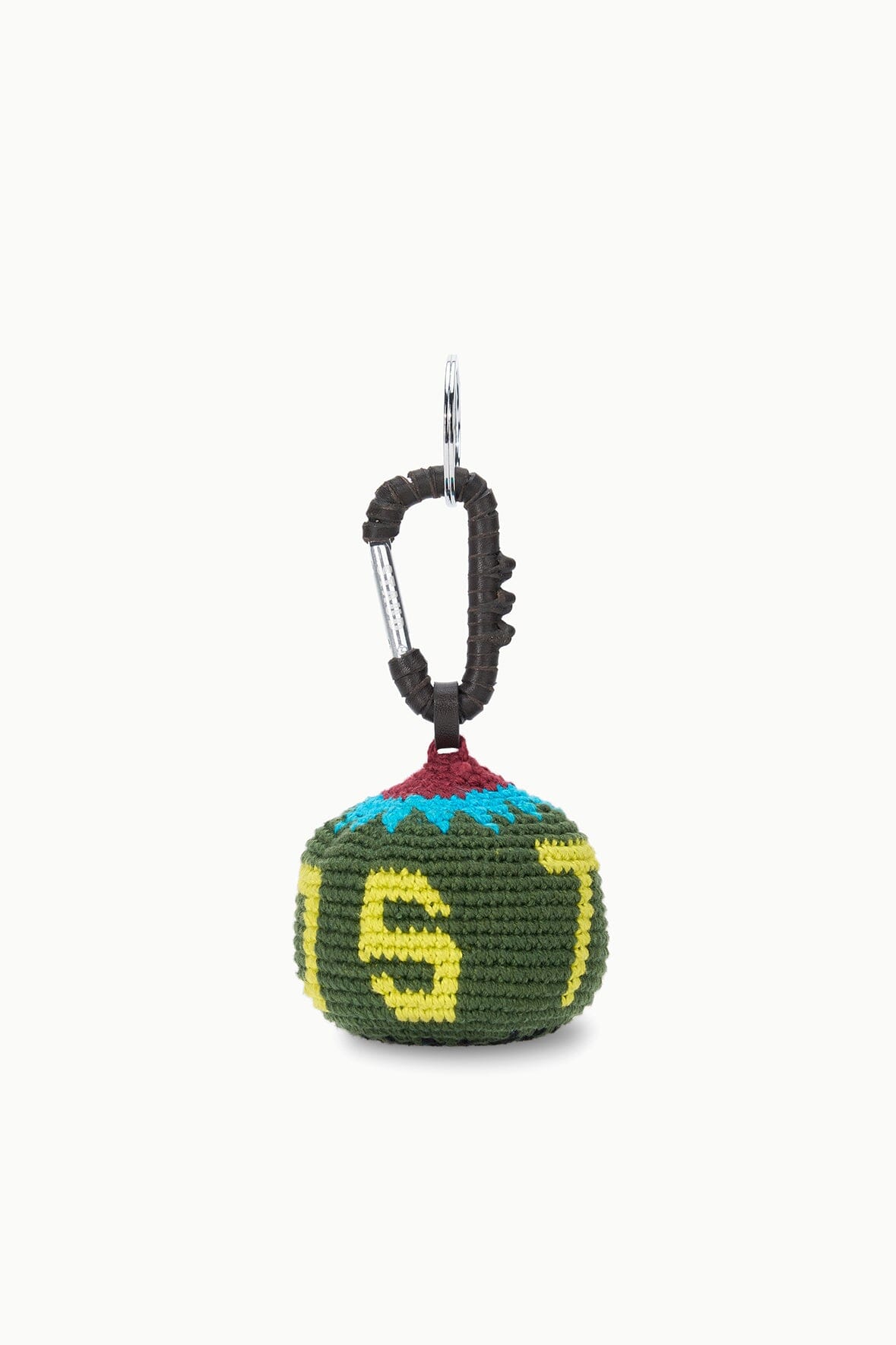 Playful nostalgia is wrapped up in our new Emmy Charm. This hacky sack-inspired charm features signature STAUD stitching and attaches via a leather-wrapped carabiner. A fun accent for bags and beyond.