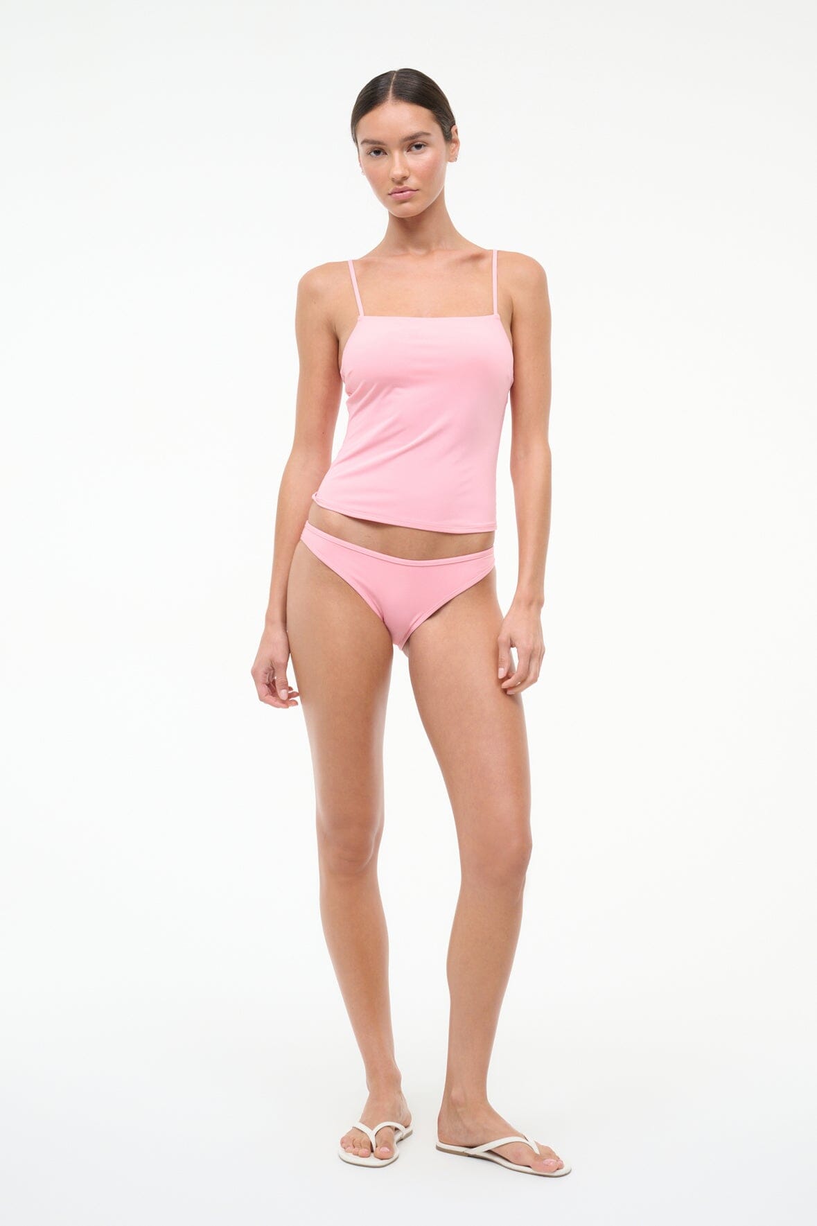 The Cleo Tankini Top is a new full length swim tank, featuring spaghetti straps and a straight neckline that can be paired with Sisley or Gemma Bikini Bottoms for a full swim set.
