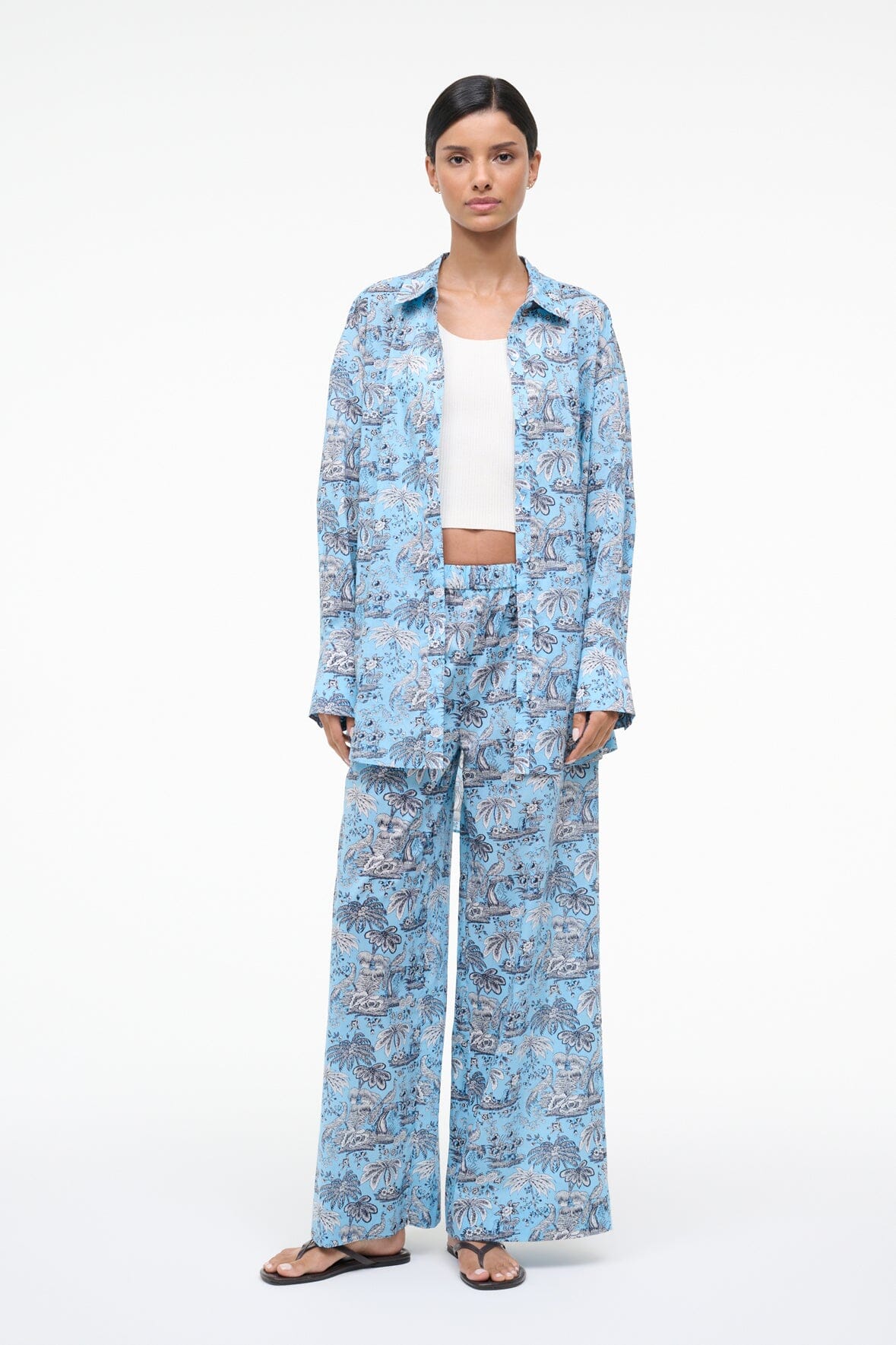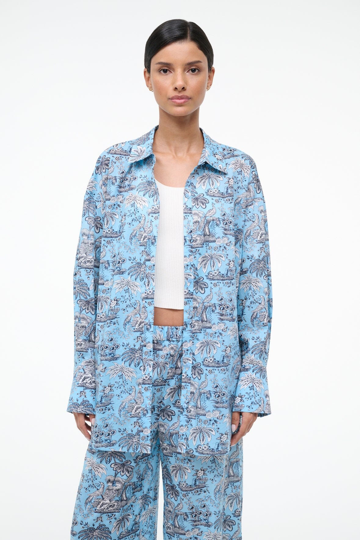 The Sandbar Top is a boxy button-up collard shirt with a curved shirt tail. This style can be worn as a two-piece set with our Bonfire Pant and can be worn casually or as a swim cover-up.
