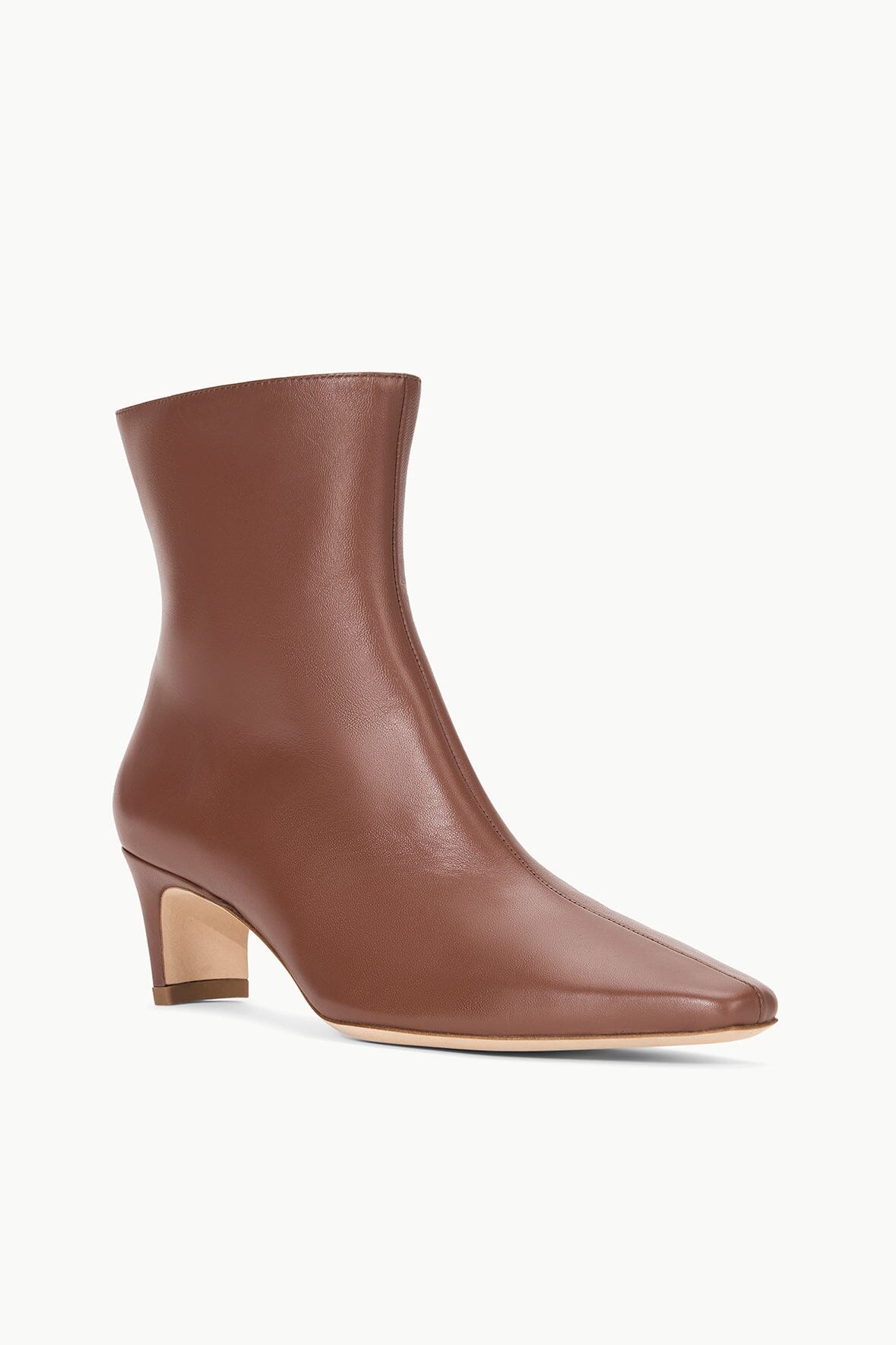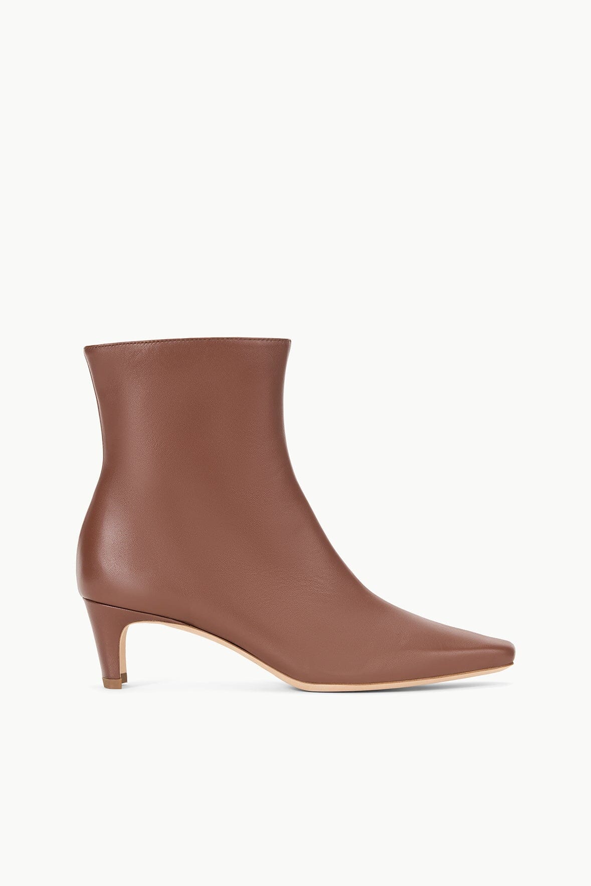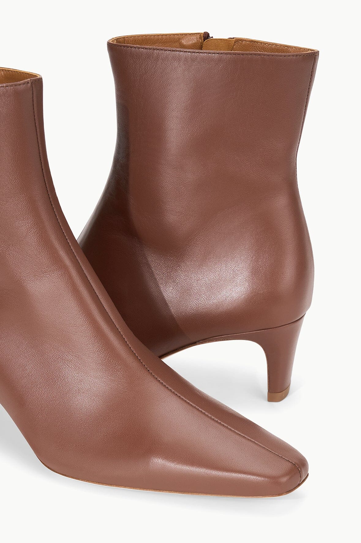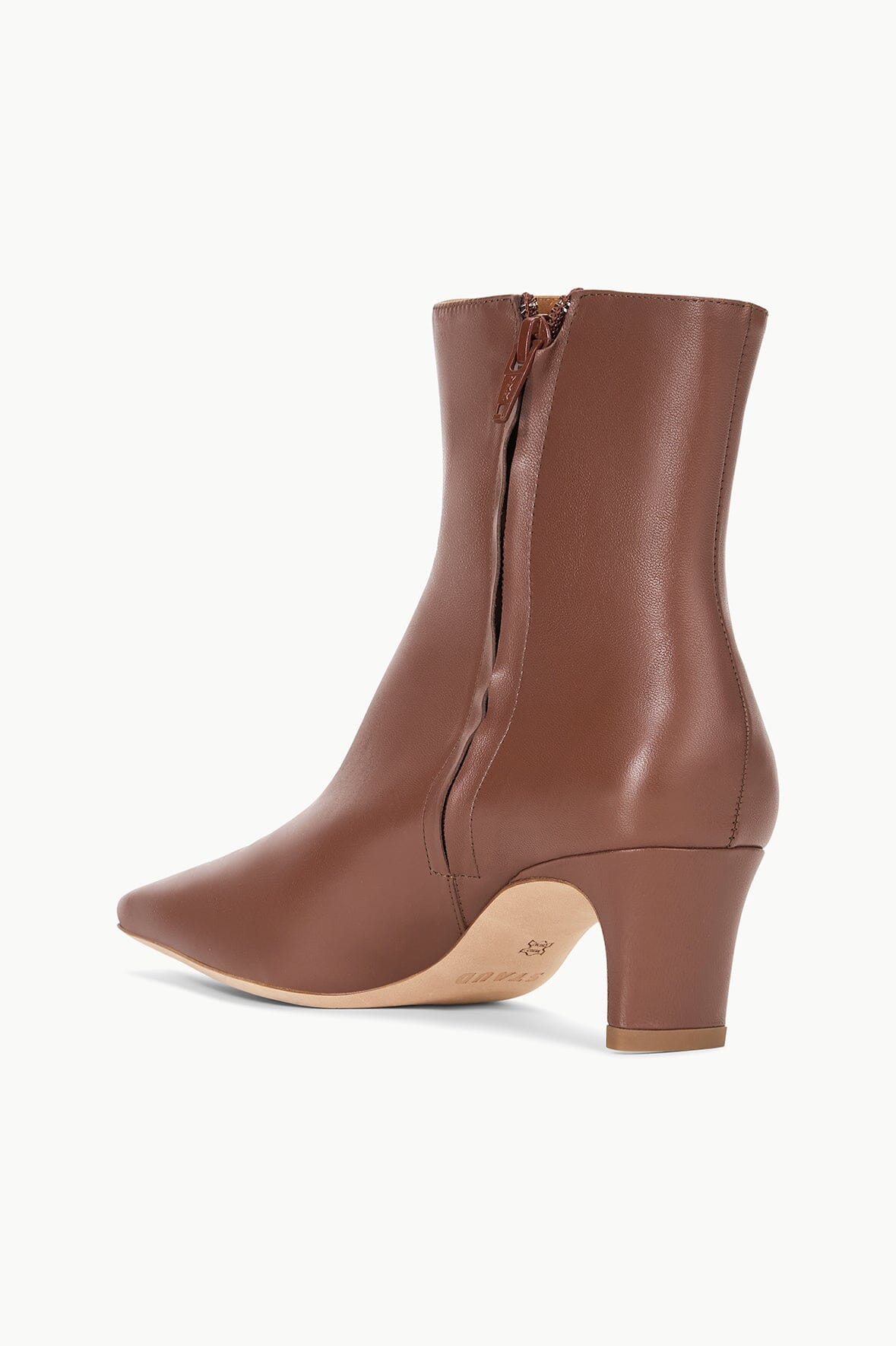 A nappa leather ankle boot, this style features a pointed rectangular toe and a blade heel. The Wally Ankle boot features a side zip closure.