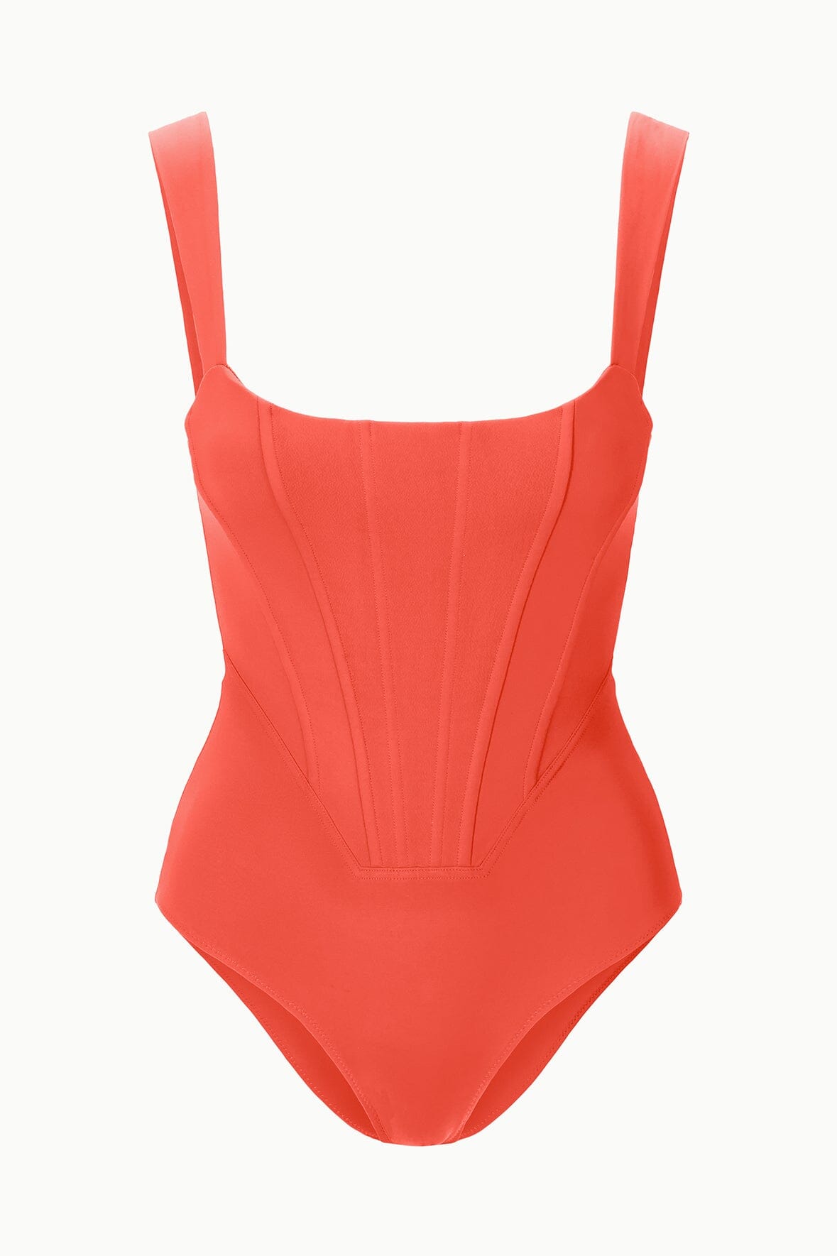 The Adelaide is a new one piece swimsuit with corset-style boning throughout the chest and torso. This style features zipper at the back and supportive shoulder straps.