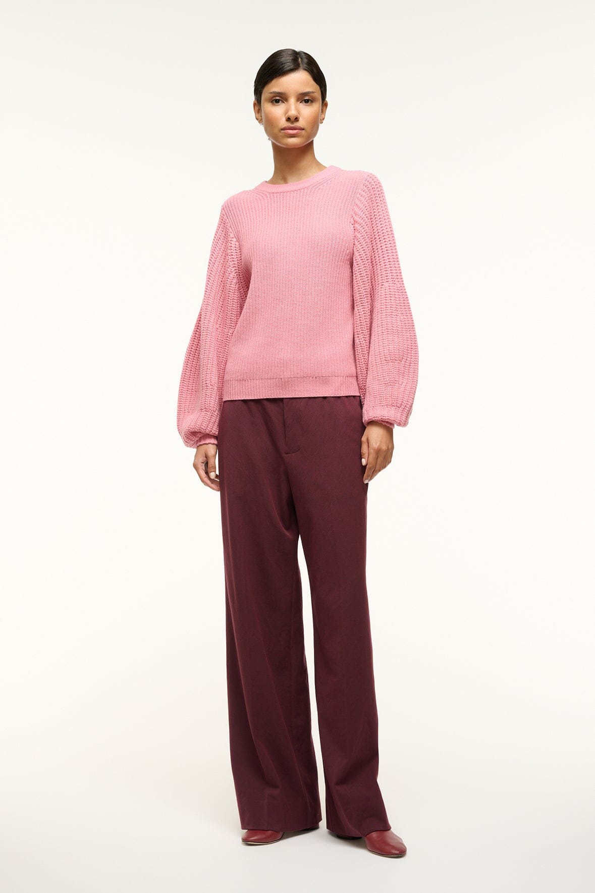 Introducing our latest sweater silhouette for Fall. The Aura is crafted in a chunky merino wool and features voluminous balloon sleeves and a crew neckline.