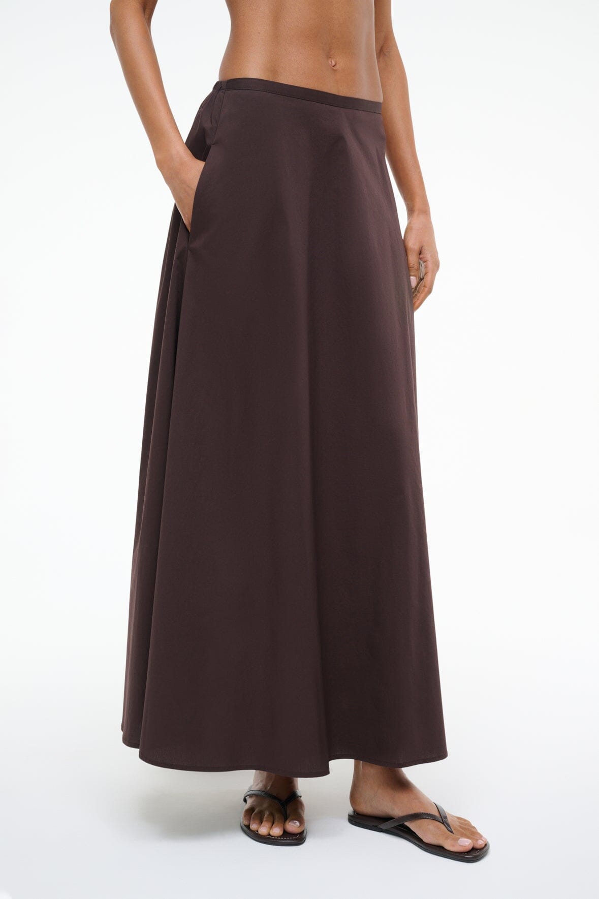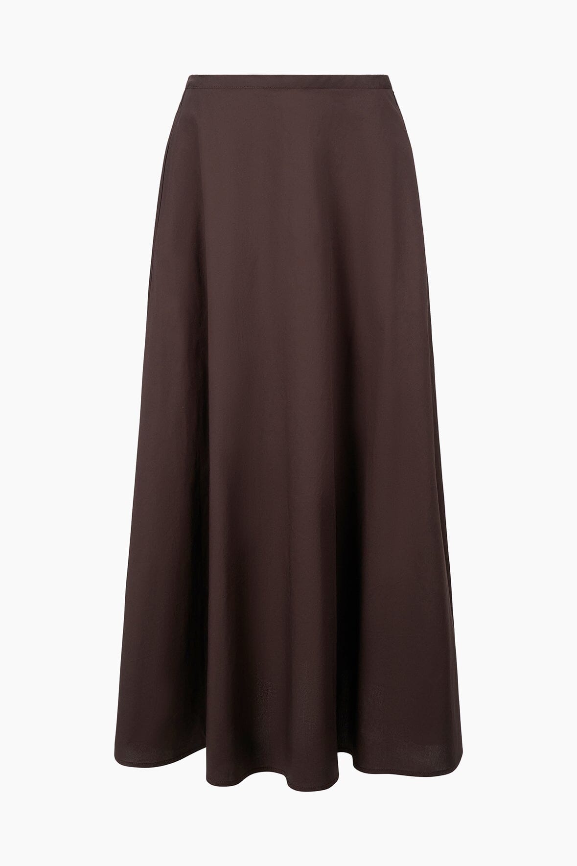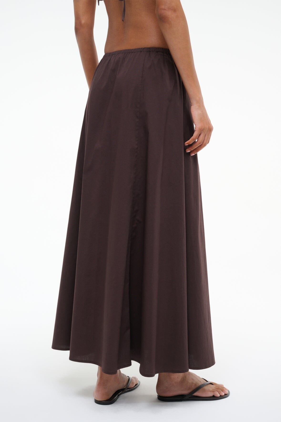 The Axel is an a-line maxi skirt crafted in cotton poplin. This style features an easy pull-on style and features an elastic band at the back and side pockets.