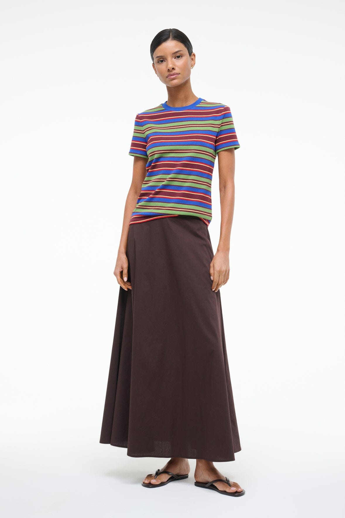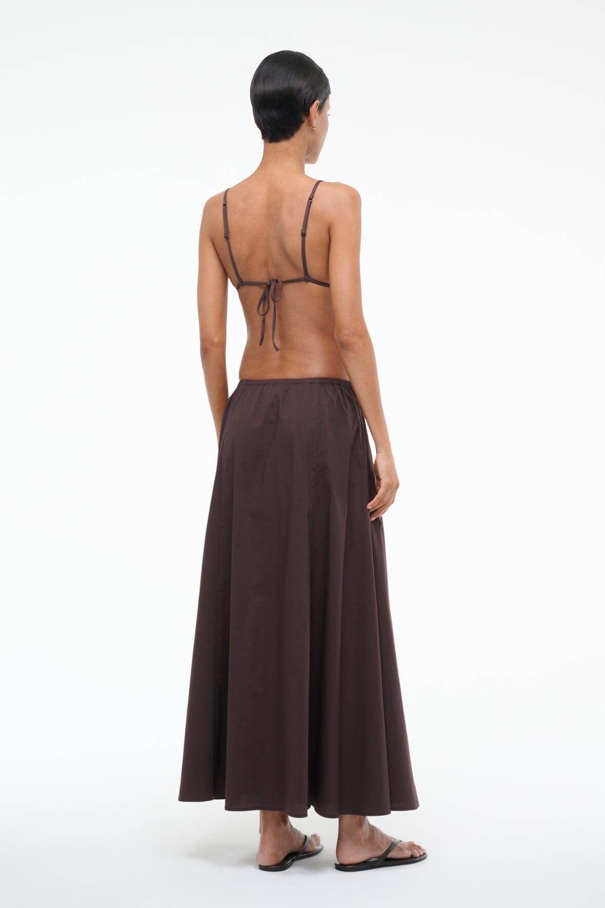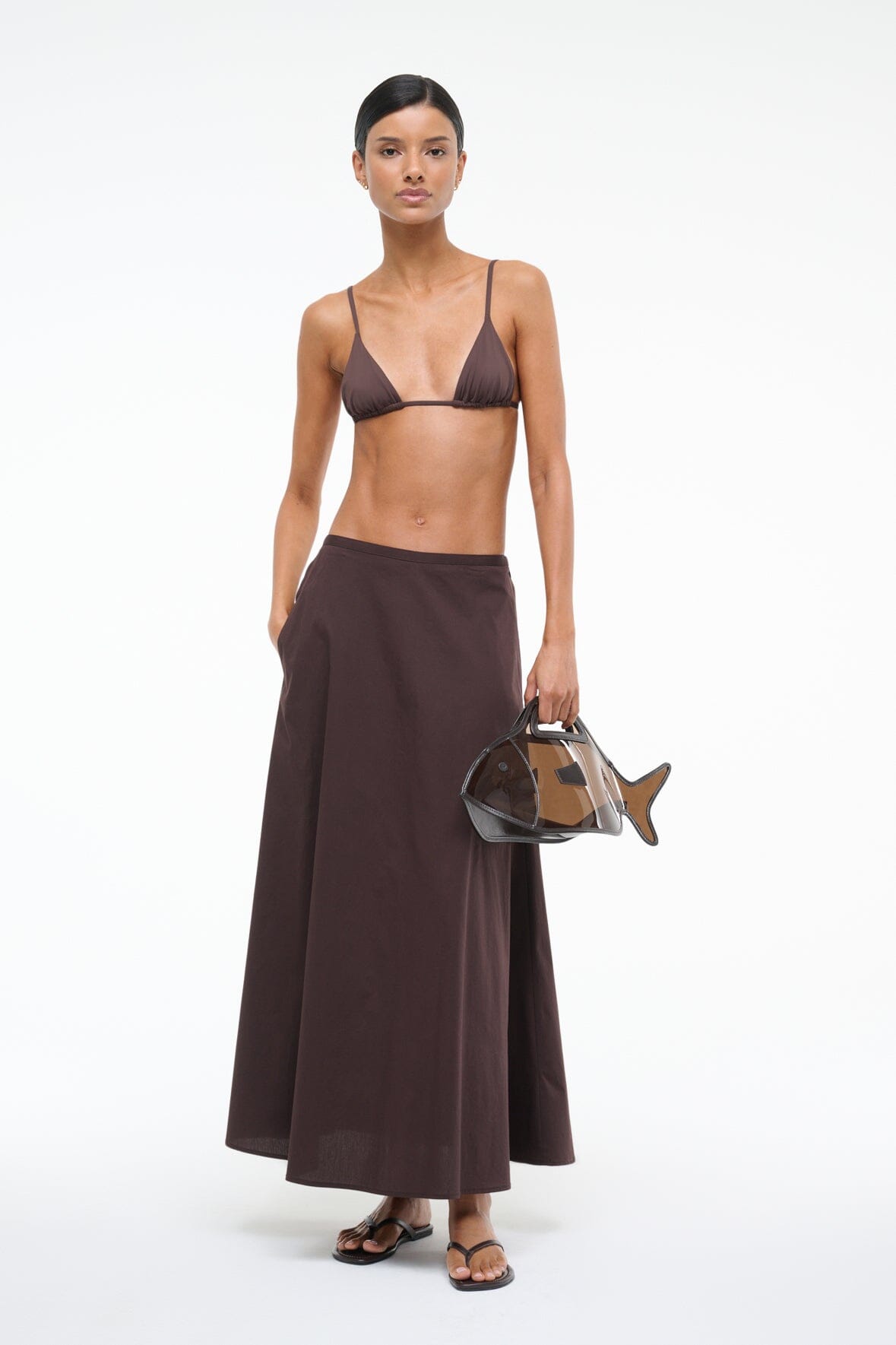The Axel is an a-line maxi skirt crafted in cotton poplin. This style features an easy pull-on style and features an elastic band at the back and side pockets.